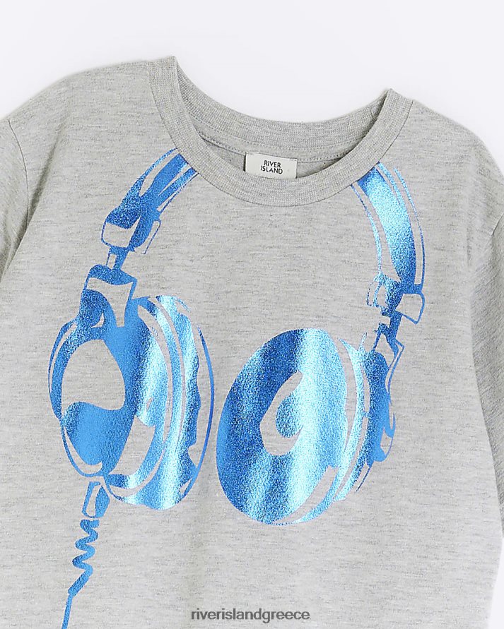 River Island ενδύματα γκρί αγόρια β ακουστικά γραφικό μπλουζάκι B6N8X6820