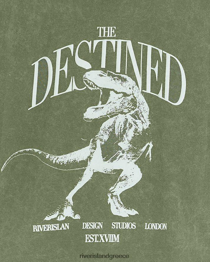 River Island ενδύματα χακί αγόρια b δεινόσαυρος γραφικό μπλουζάκι B6N8X6862