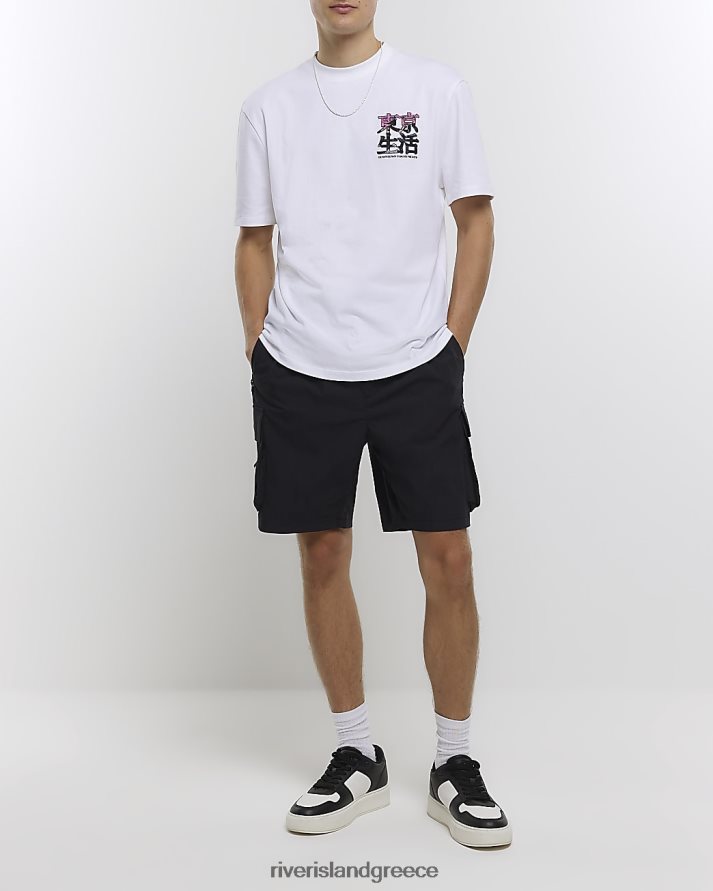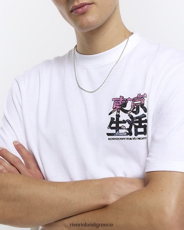 River Island ενδύματα άσπρο άνδρες κανονική εφαρμογή γιαπωνέζικα γραφικά μπλουζάκι B6N8X5732