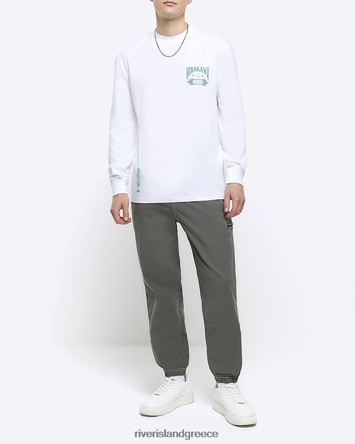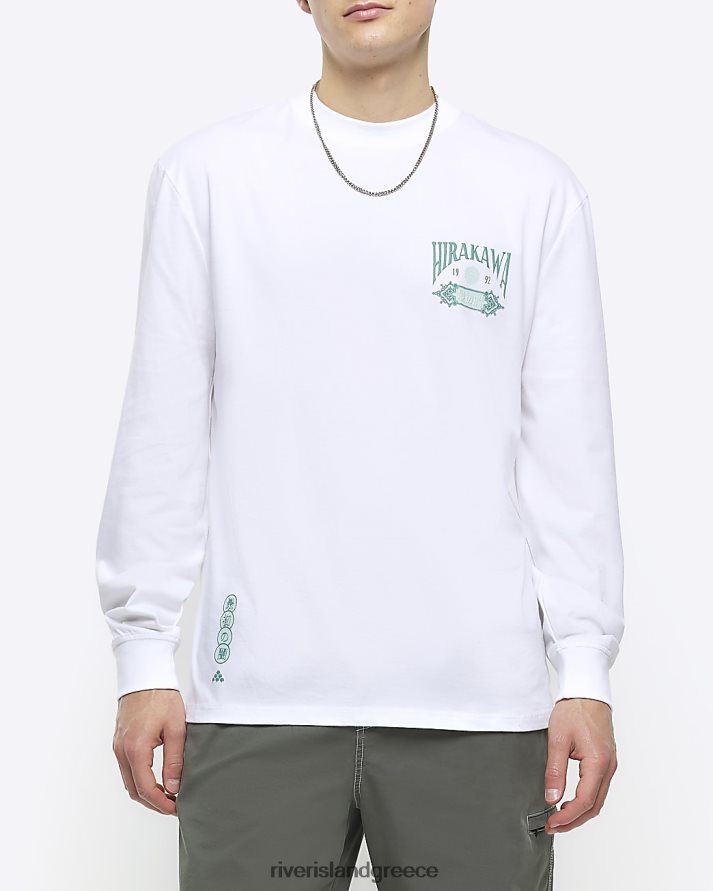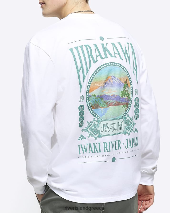 River Island ενδύματα άσπρο άνδρες κανονική εφαρμογή γραφικό μακρυμάνικο μπλουζάκι B6N8X5390
