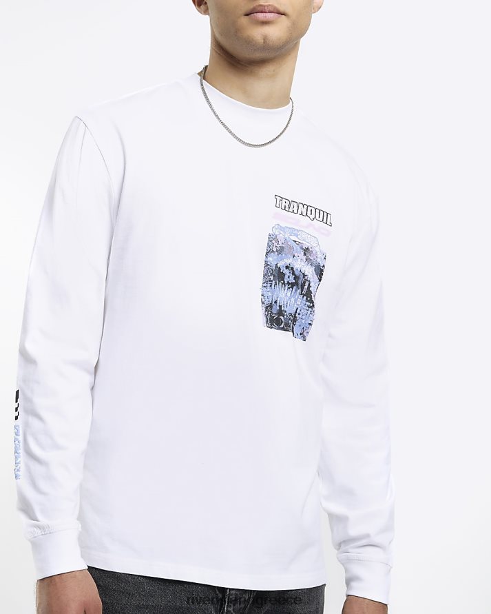 River Island ενδύματα άσπρο άνδρες κανονική εφαρμογή γραφικό μακρυμάνικο μπλουζάκι B6N8X5655