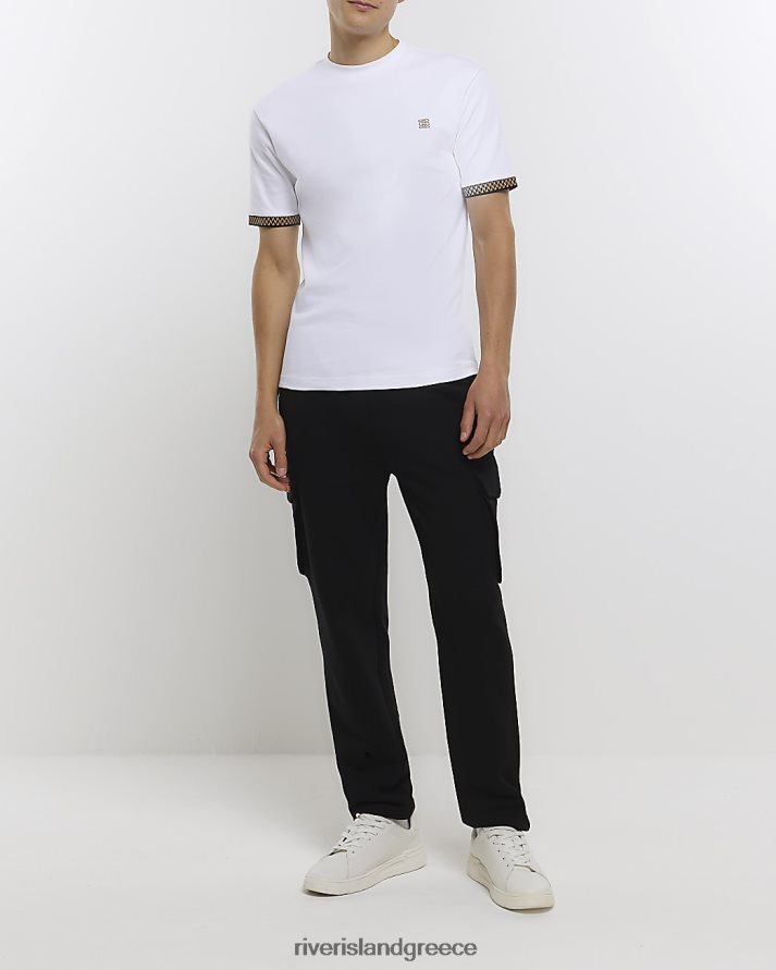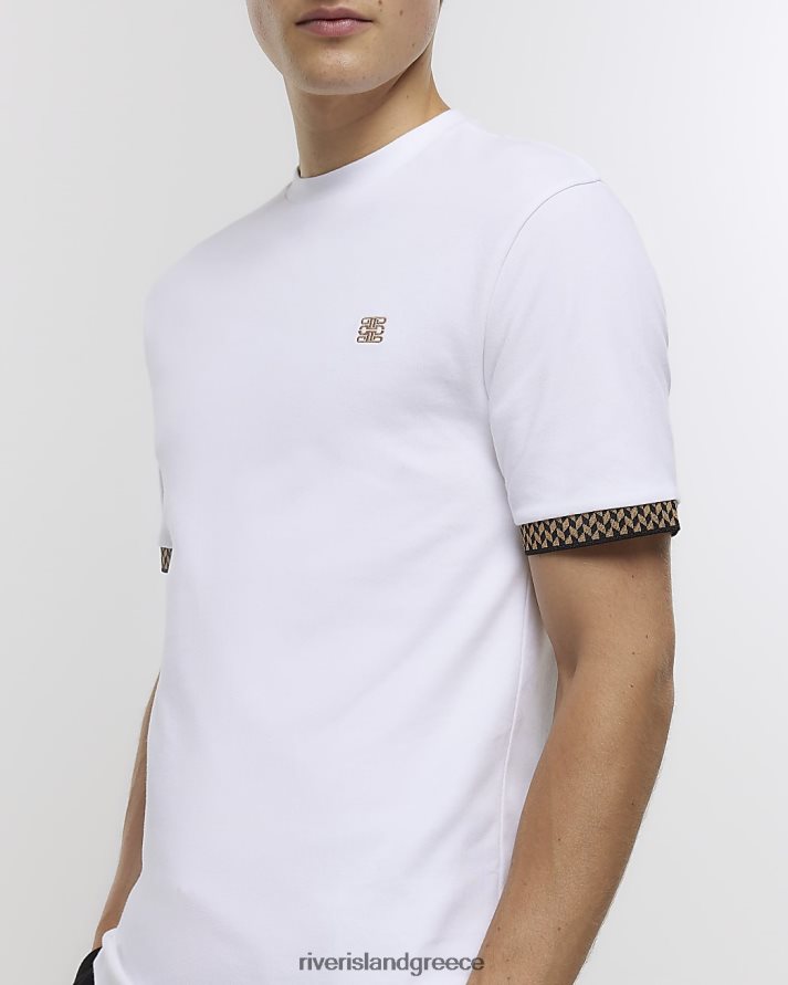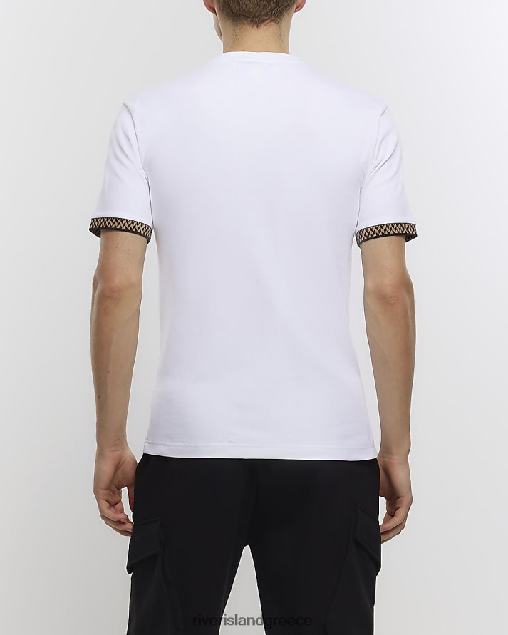 River Island ενδύματα άσπρο άνδρες κοντομάνικο μπλουζάκι κουδουνιού για μυϊκή εφαρμογή B6N8X2736