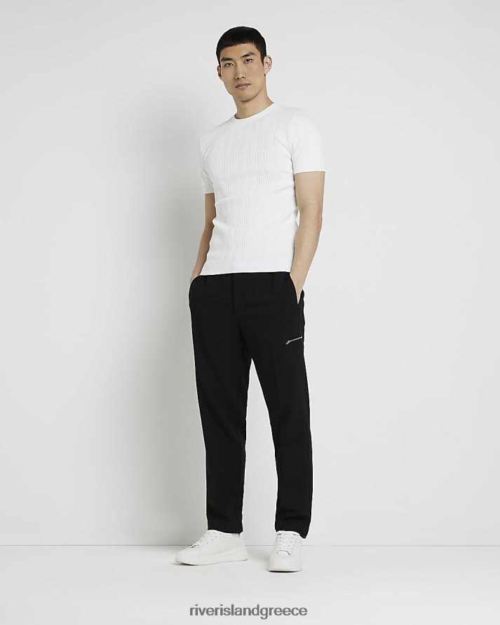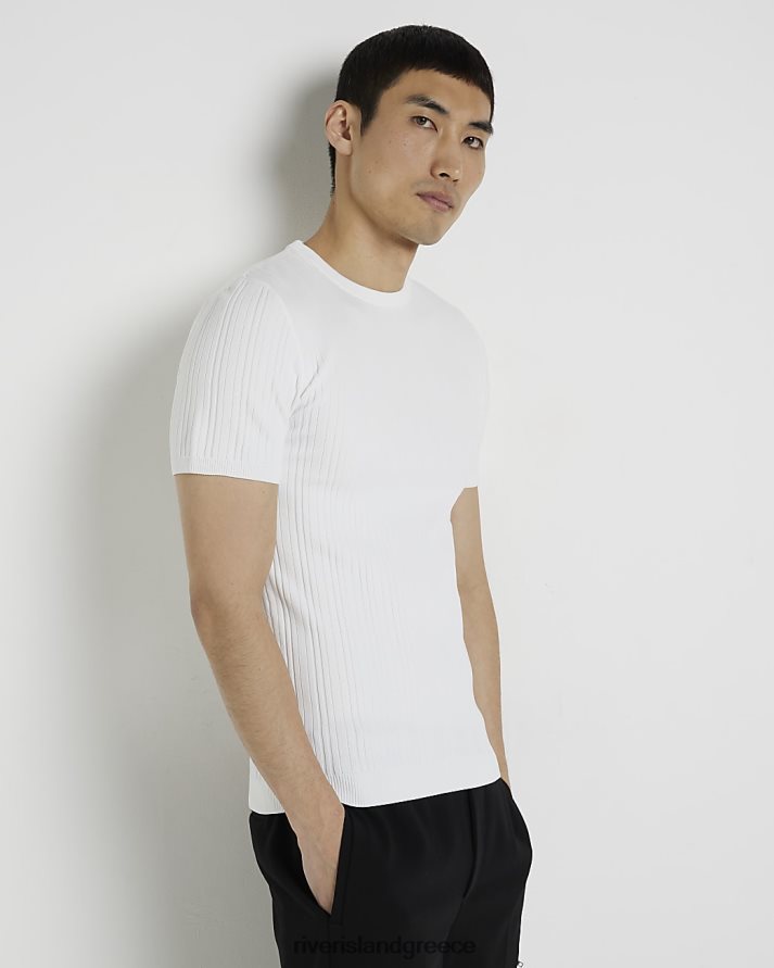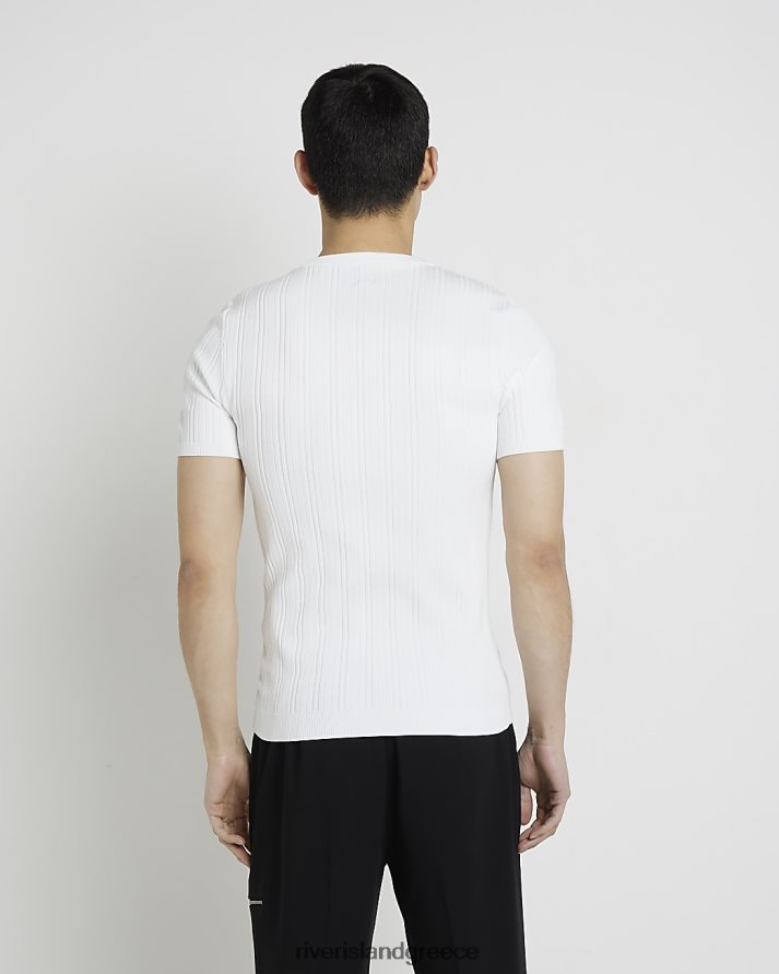 River Island ενδύματα άσπρο άνδρες μυϊκή εφαρμογή πλεκτό μπλουζάκι με ραβδώσεις B6N8X3133