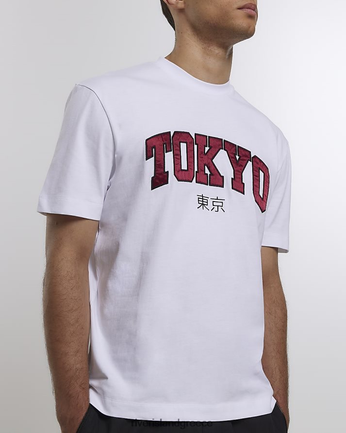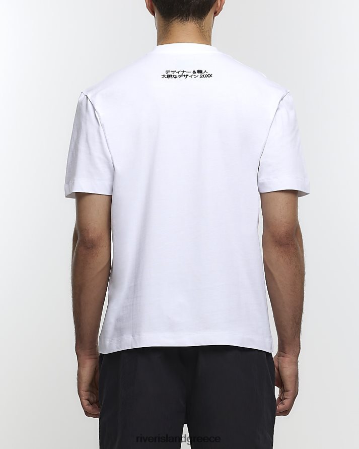 River Island ενδύματα άσπρο άνδρες υπερμεγέθη εφαρμοστή μπλούζα tokyo B6N8X5691