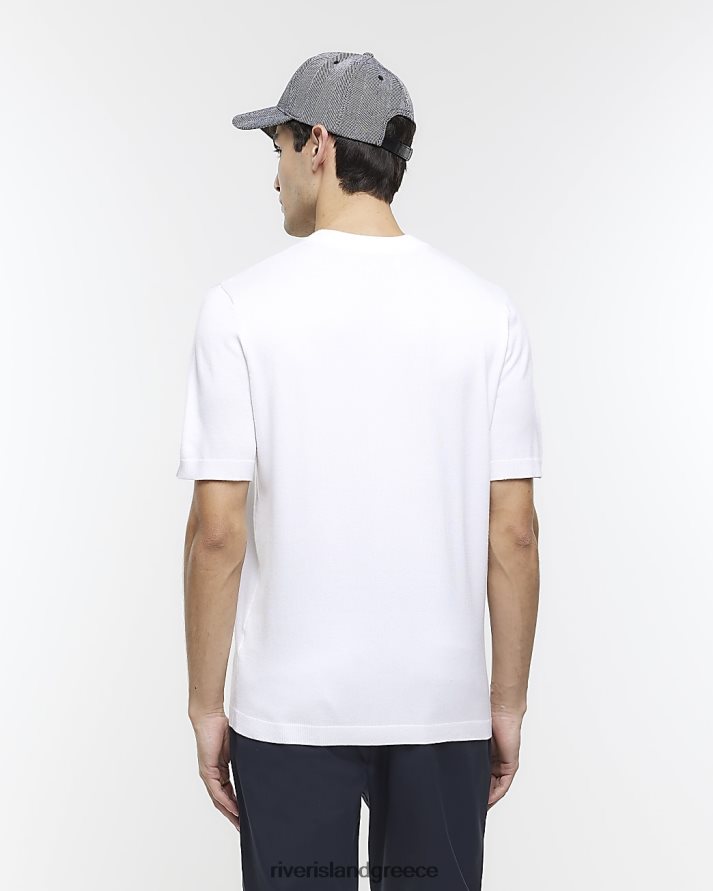 River Island ενδύματα άσπρο άνδρες slim fit πλεκτό t-shirt B6N8X3004