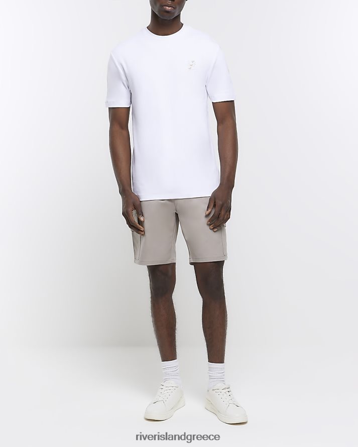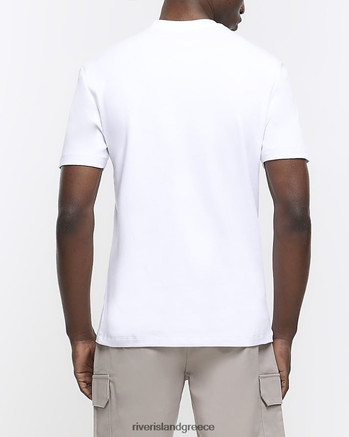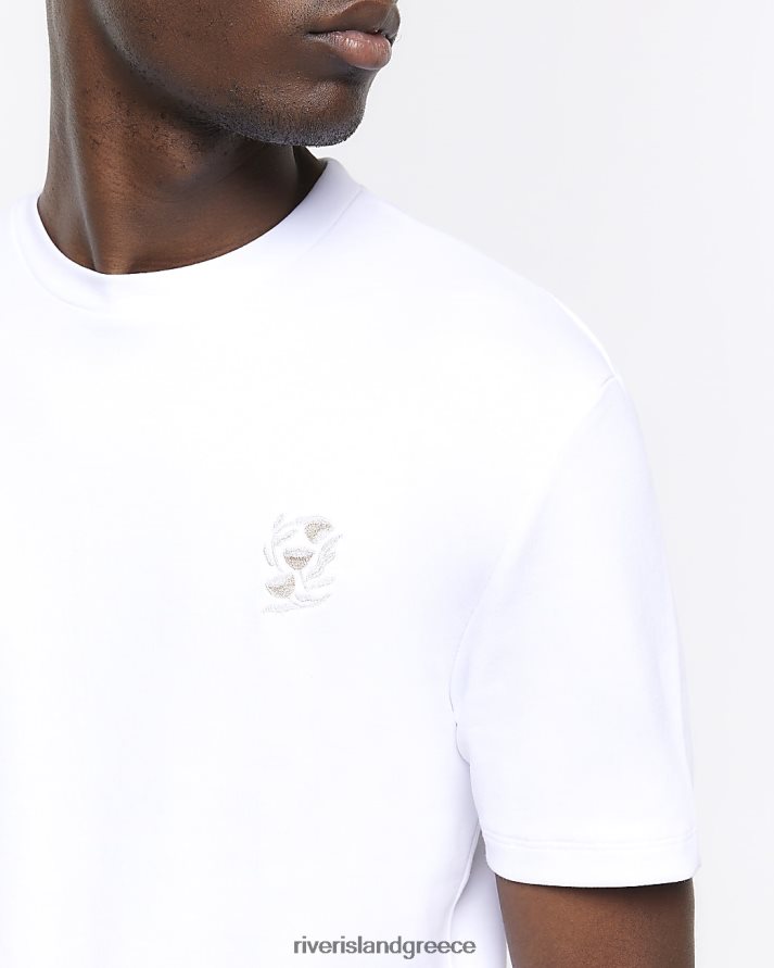 River Island ενδύματα άσπρο άνδρες T-shirt με κέντημα στο στήθος σε λεπτή εφαρμογή B6N8X3047