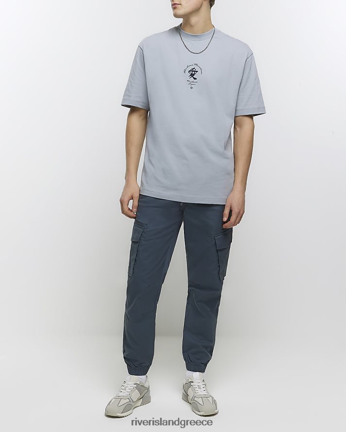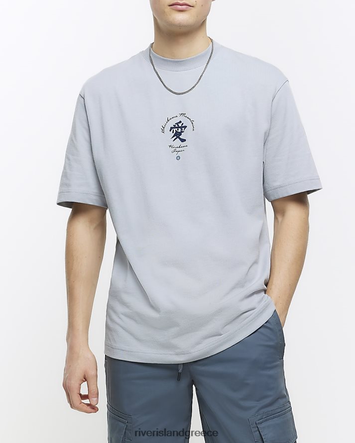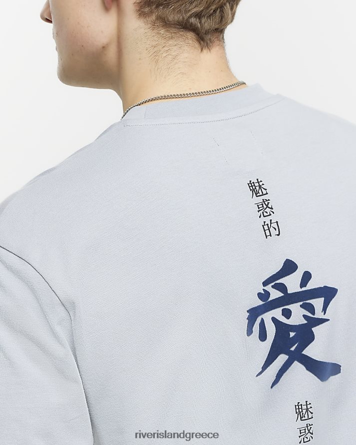 River Island ενδύματα γκρί άνδρες κανονική εφαρμογή γιαπωνέζικα γραφικά μπλουζάκι B6N8X5433