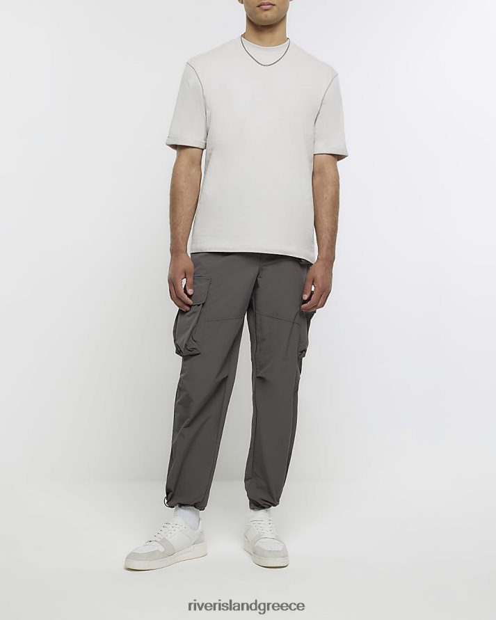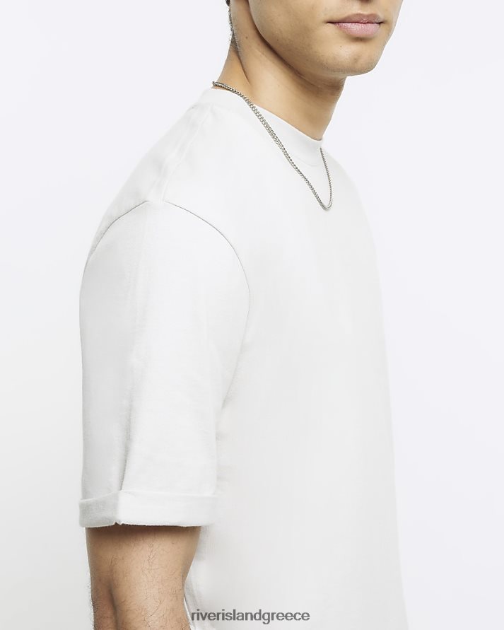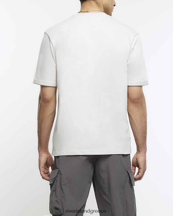 River Island ενδύματα γκρί άνδρες μπλουζάκι με ρολό μανίκι σε κανονική εφαρμογή B6N8X2972
