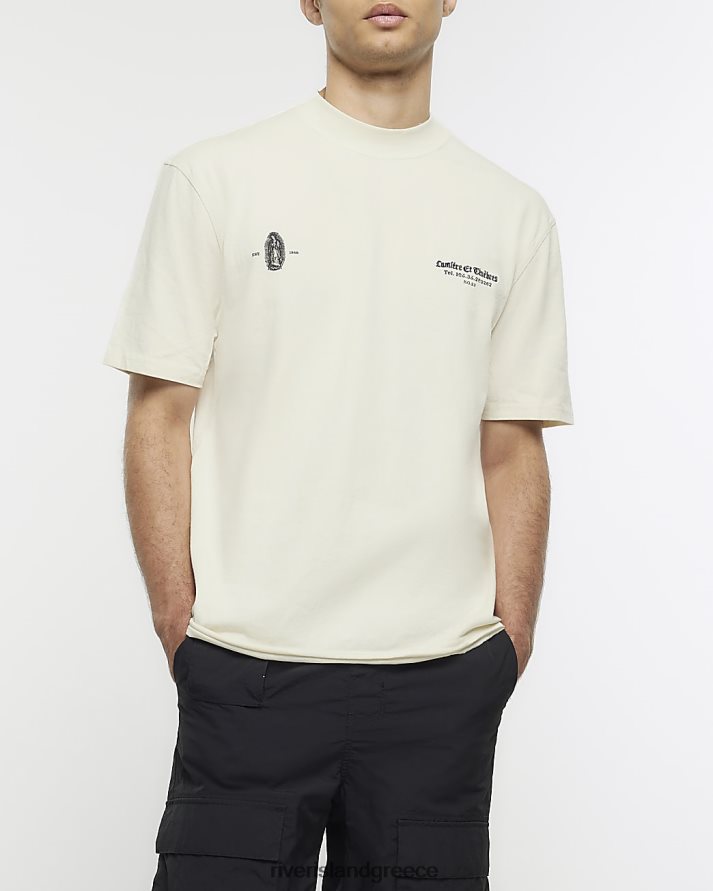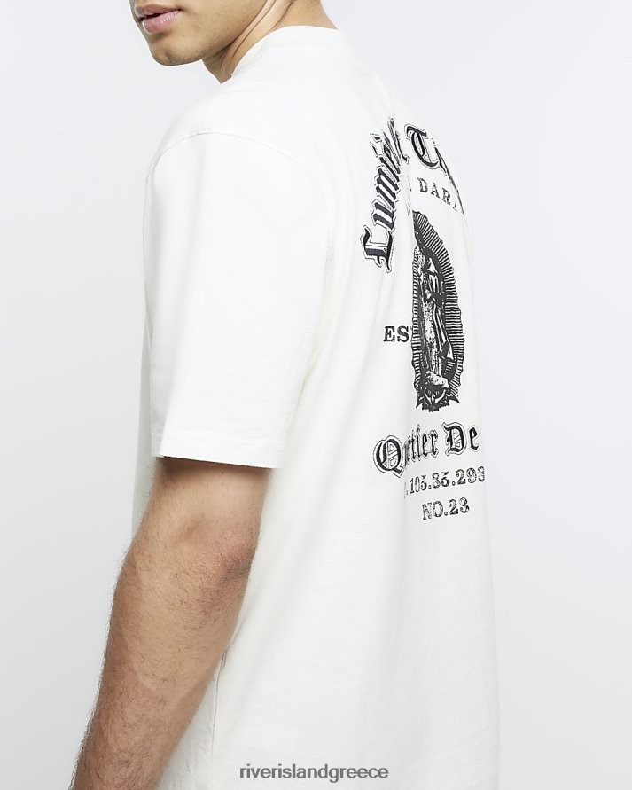 River Island ενδύματα εκρού άνδρες γραφικό μπλουζάκι με κανονική εφαρμογή B6N8X5631