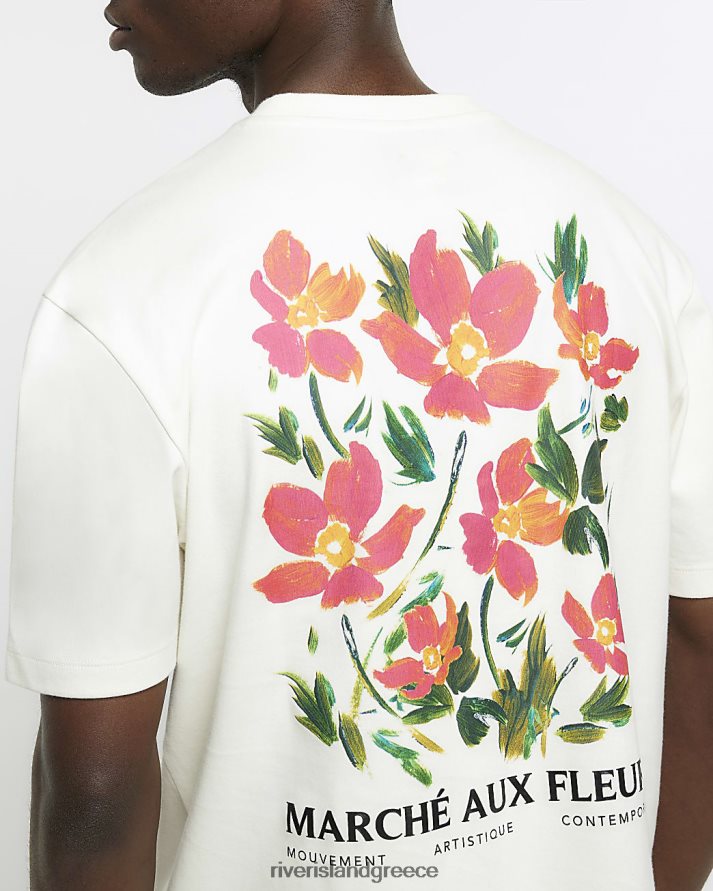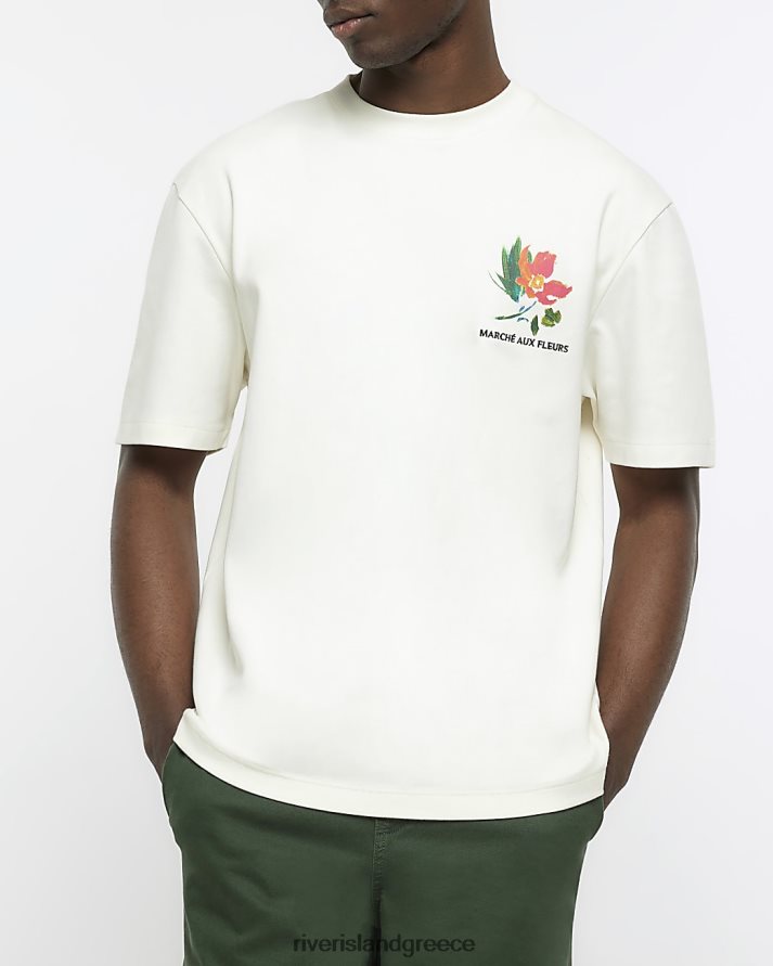 River Island ενδύματα εκρού άνδρες floral γραφικό μπλουζάκι με κανονική εφαρμογή B6N8X2478