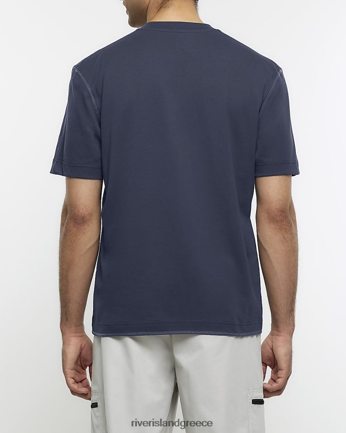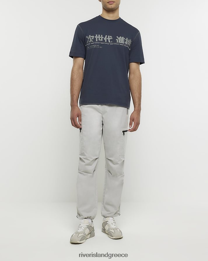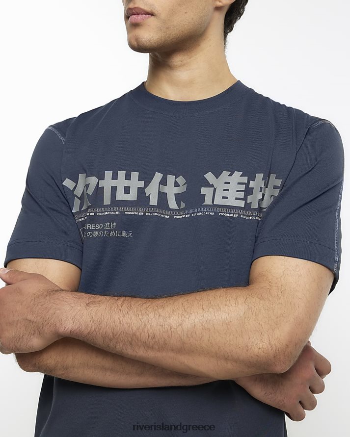 River Island ενδύματα μαύρος άνδρες κανονική εφαρμογή γιαπωνέζικα γραφικά μπλουζάκι B6N8X5566