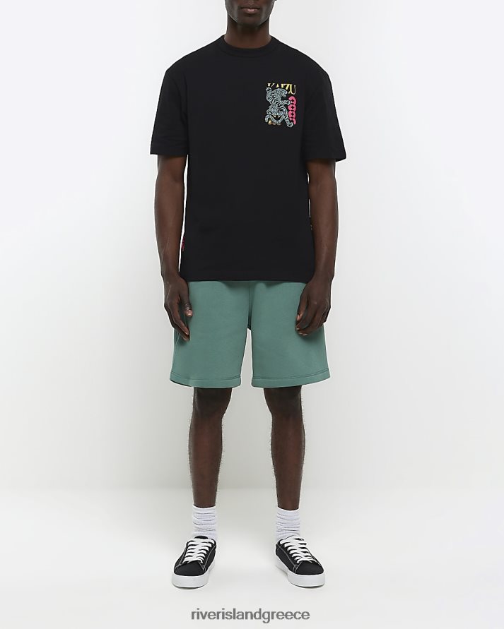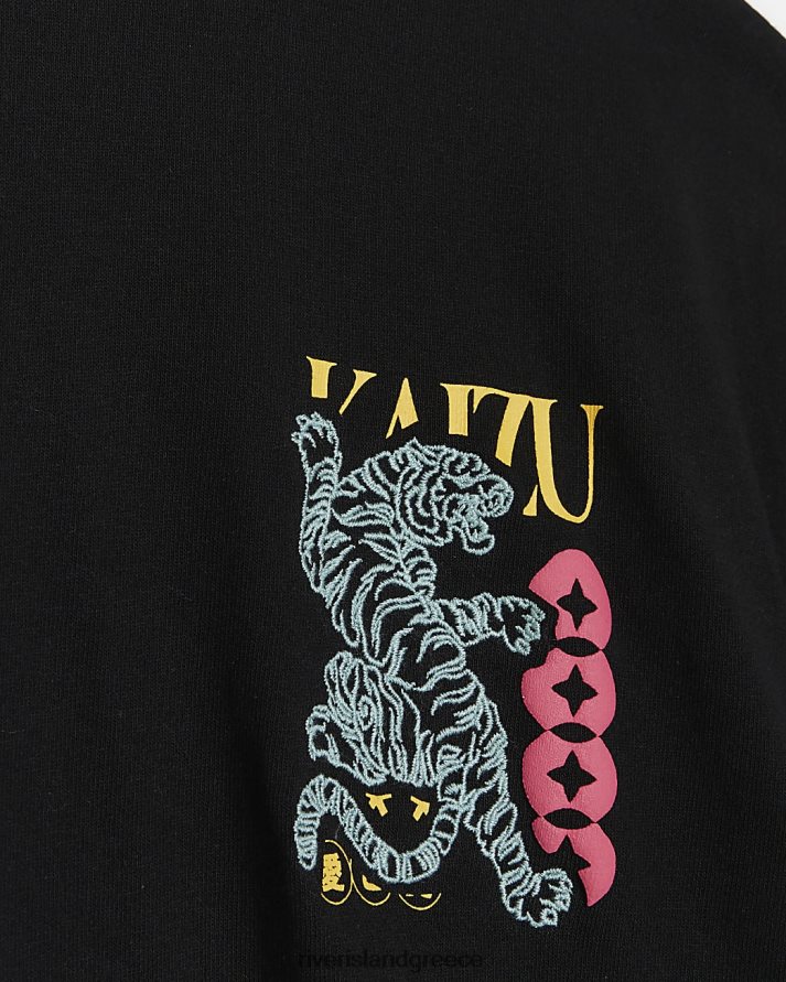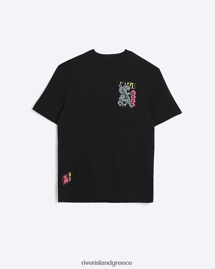 River Island ενδύματα μαύρος άνδρες κανονική εφαρμογή γιαπωνέζικα γραφικά μπλουζάκι B6N8X5690