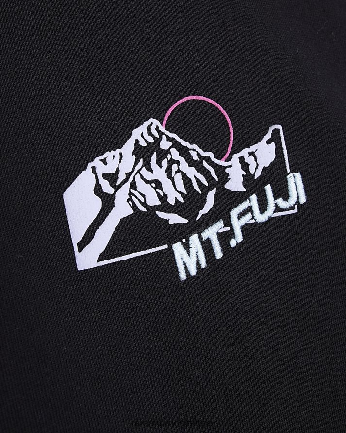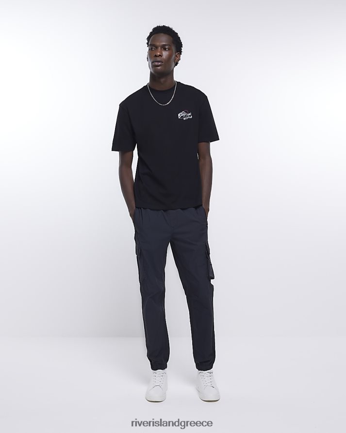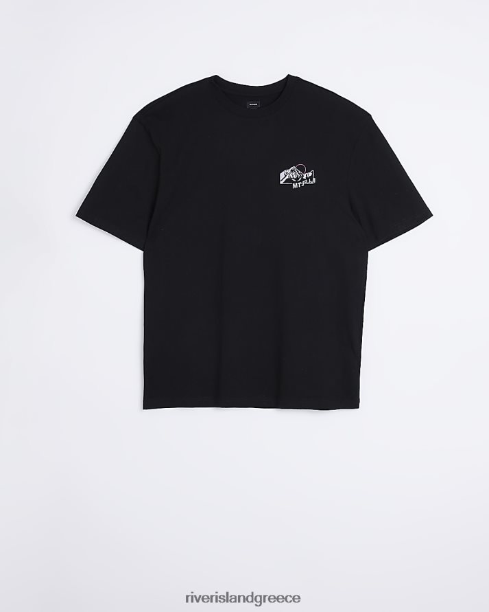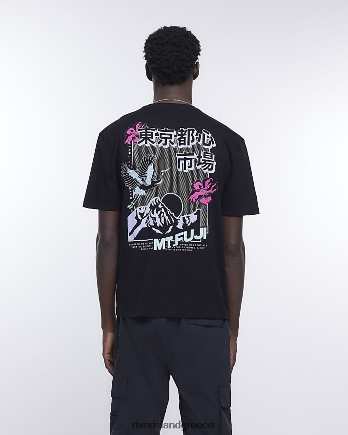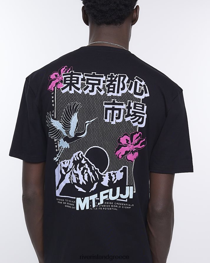 River Island ενδύματα μαύρος άνδρες κανονική εφαρμογή γιαπωνέζικα γραφικά μπλουζάκι B6N8X5772