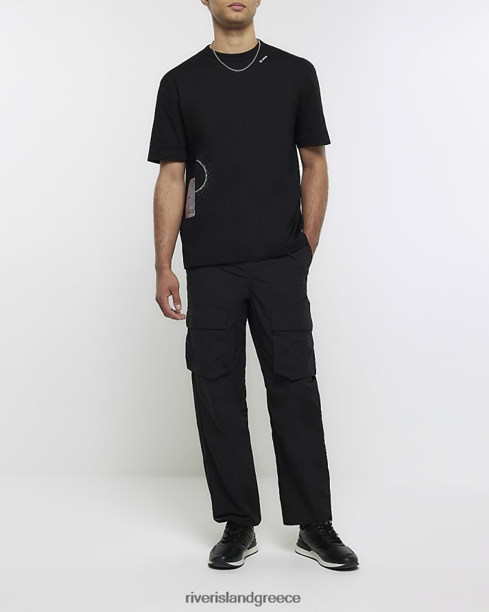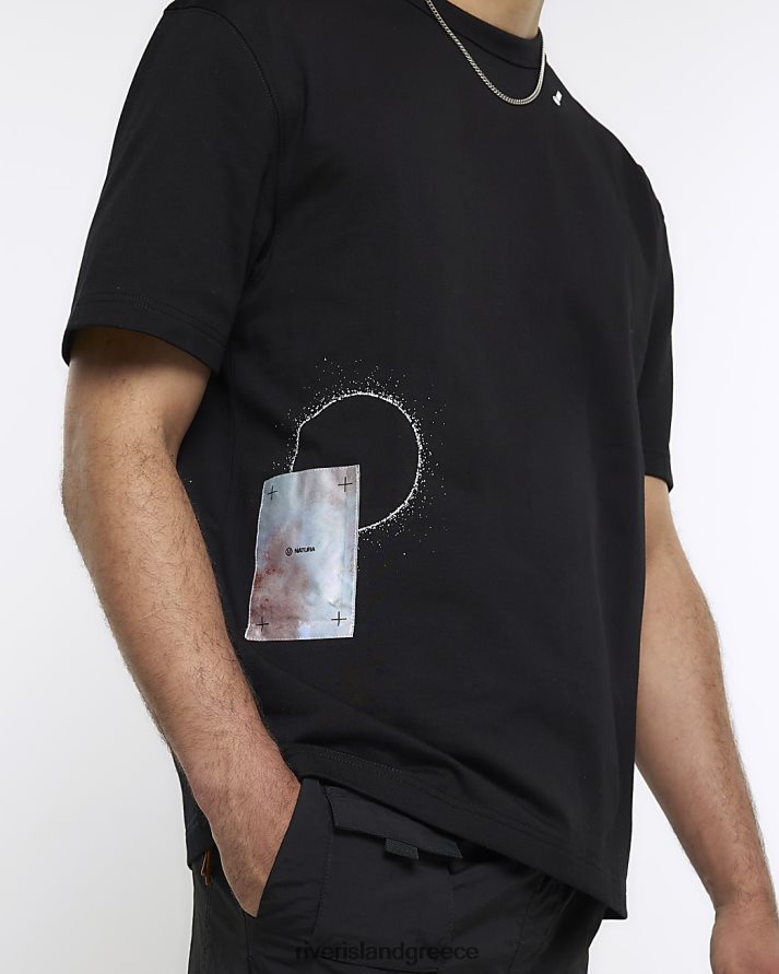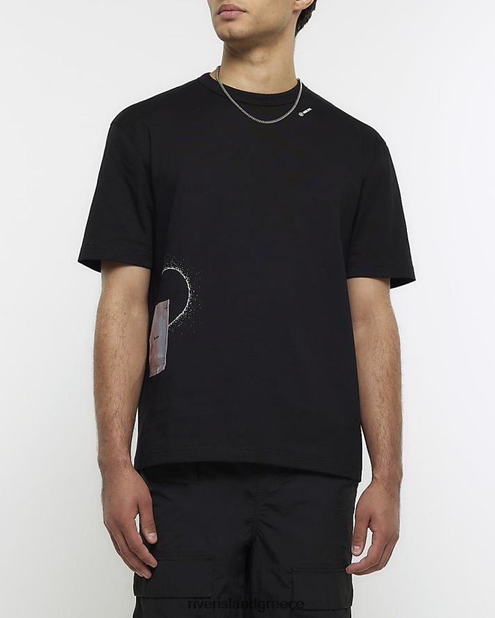 River Island ενδύματα μαύρος άνδρες κανονική εφαρμογή γραφικά μπαλώματα μπλουζάκι B6N8X5392