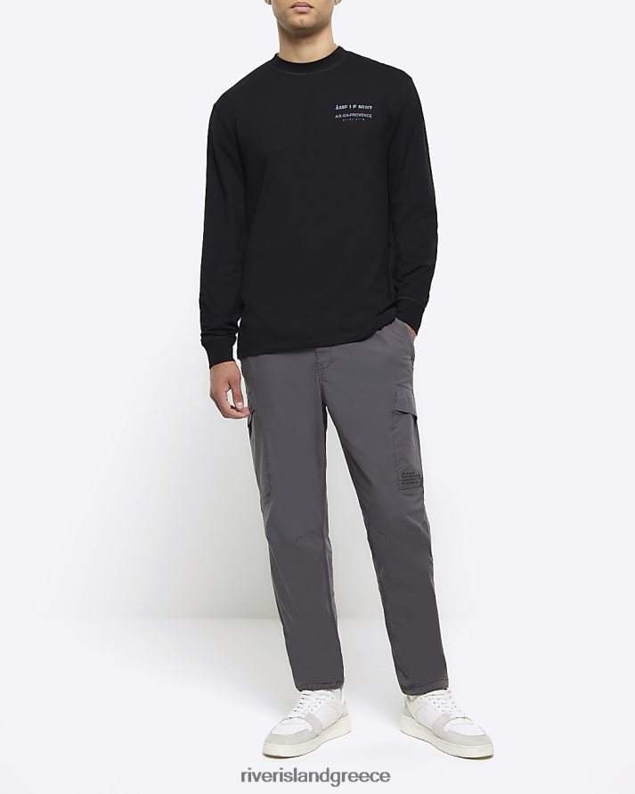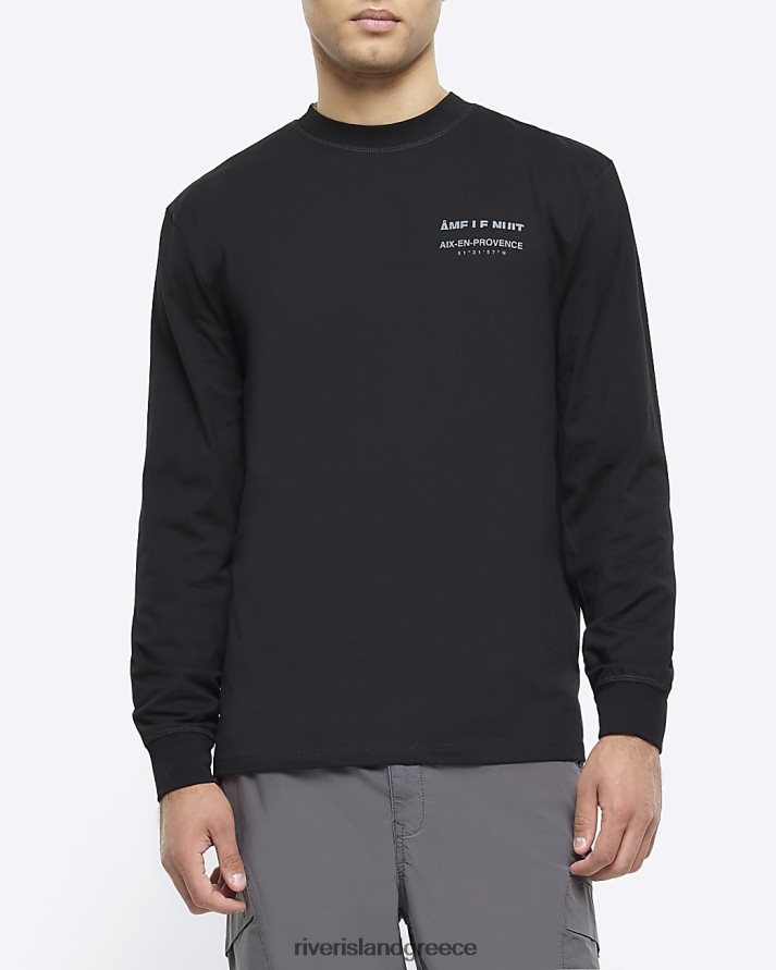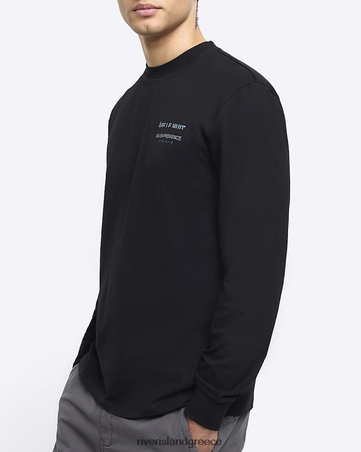River Island ενδύματα μαύρος άνδρες κανονική εφαρμογή γραφικό μακρυμάνικο μπλουζάκι B6N8X5602