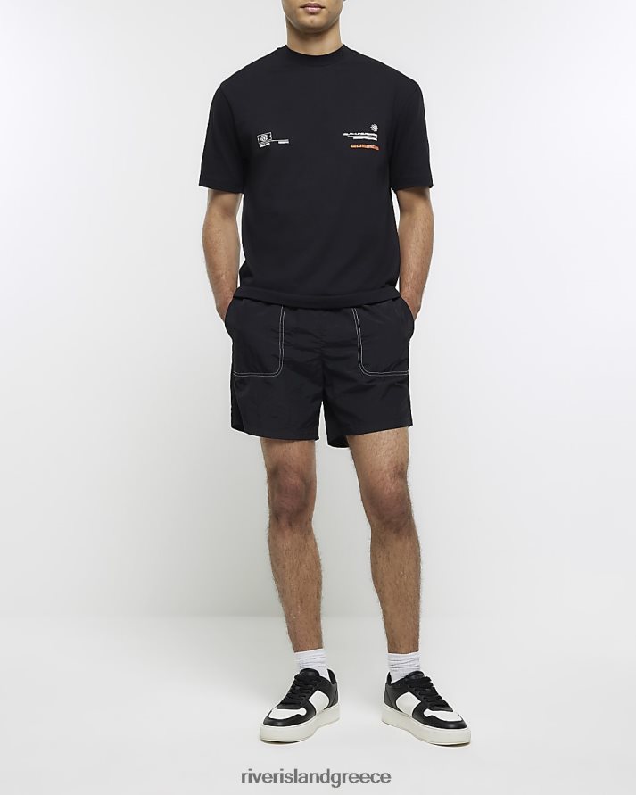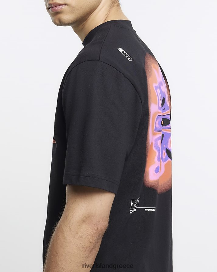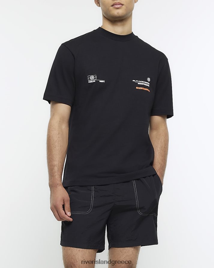 River Island ενδύματα μαύρος άνδρες κανονική εφαρμογή γραφικό μπλουζάκι με στάμπα B6N8X5397