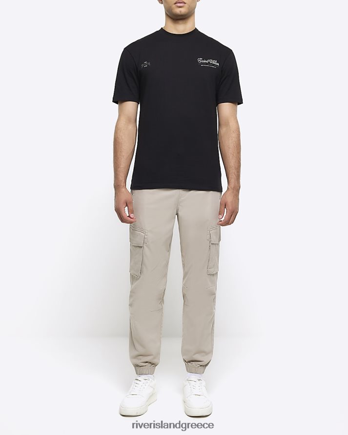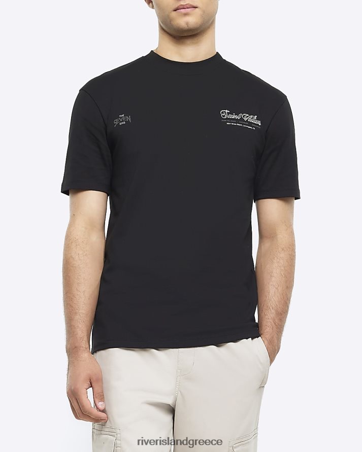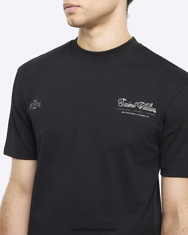 River Island ενδύματα μαύρος άνδρες κανονική εφαρμογή γραφικό μπλουζάκι diamante B6N8X5632