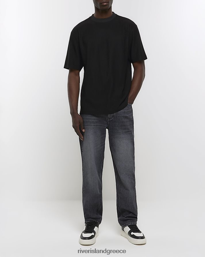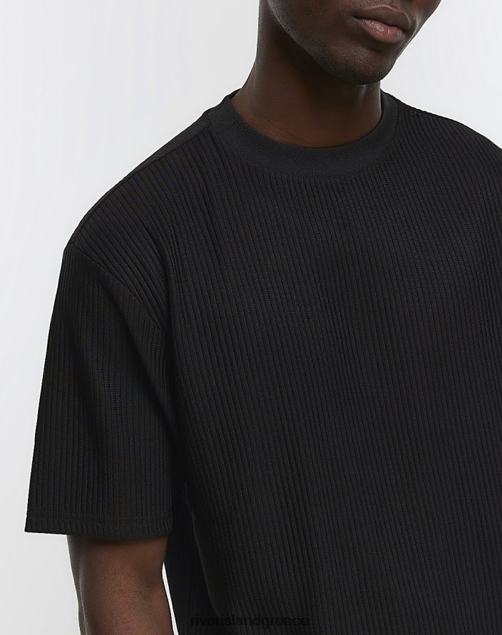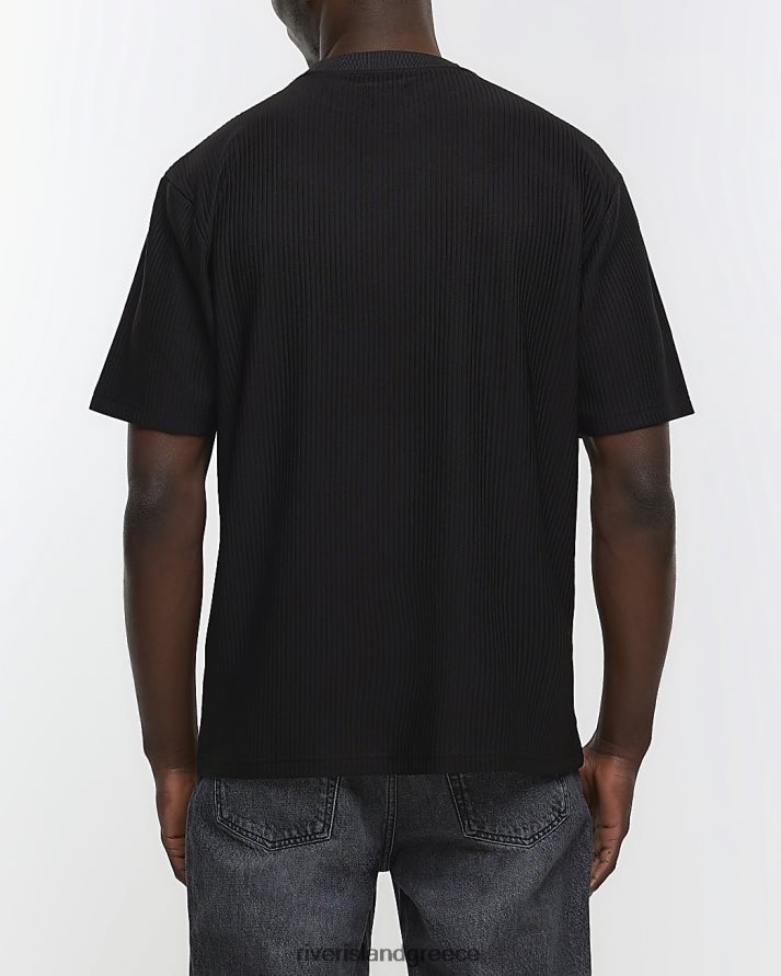 River Island ενδύματα μαύρος άνδρες κανονική εφαρμογή plisse t-shirt B6N8X2798