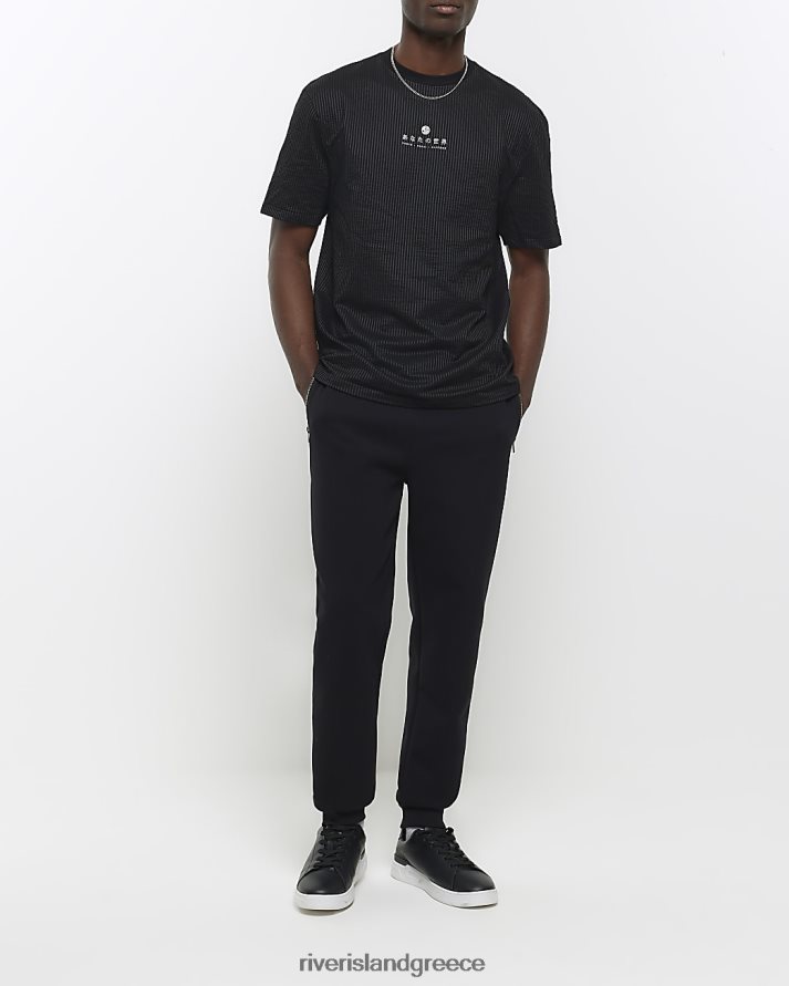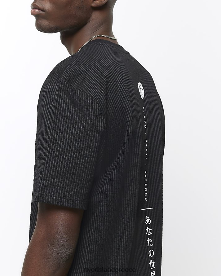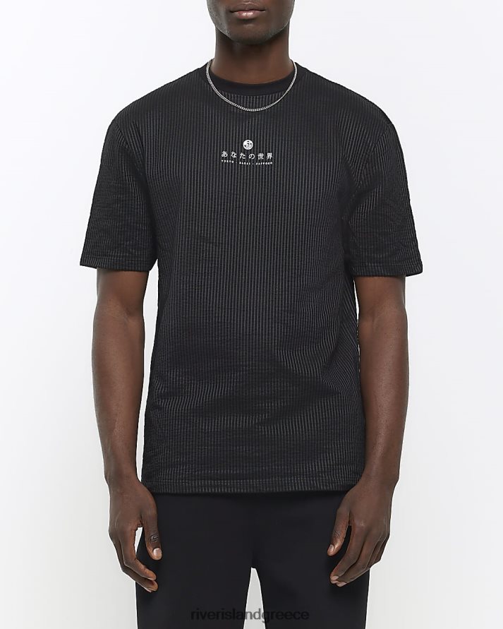 River Island ενδύματα μαύρος άνδρες κανονική εφαρμογή seersucker γραφικό μπλουζάκι B6N8X5403