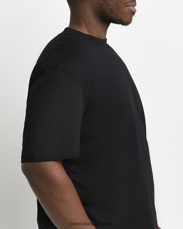 River Island ενδύματα μαύρος άνδρες μεγάλο & ψηλό μπλουζάκι με καμπυλωτό στρίφωμα με λεπτή εφαρμογή B6N8X3147