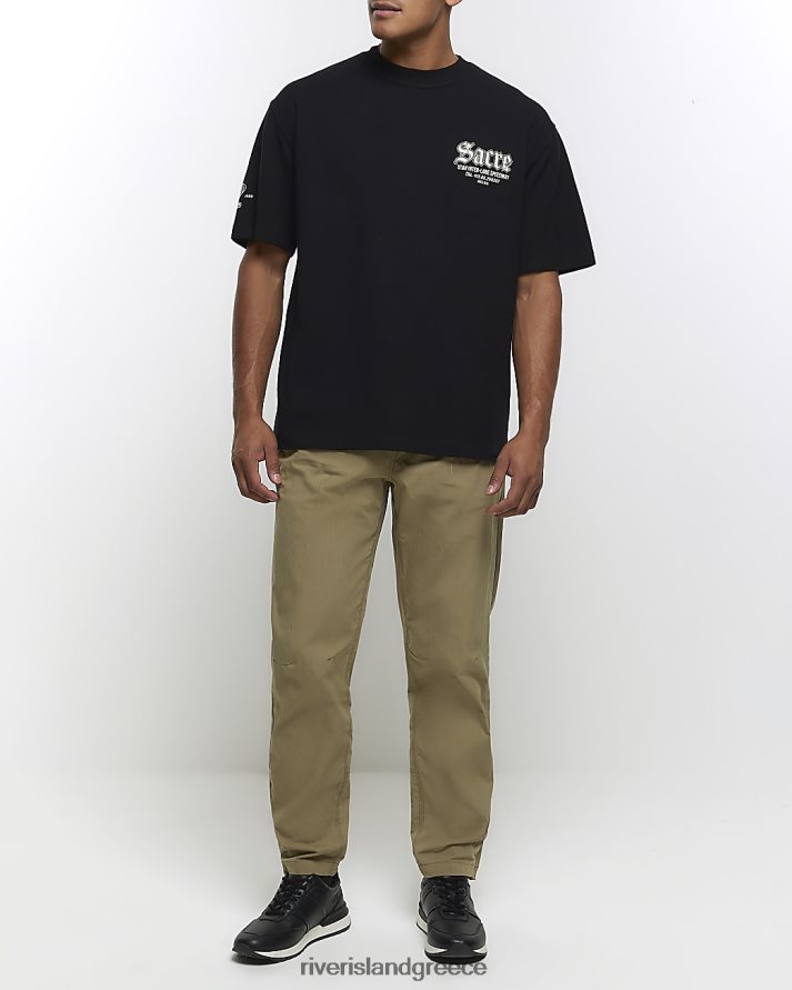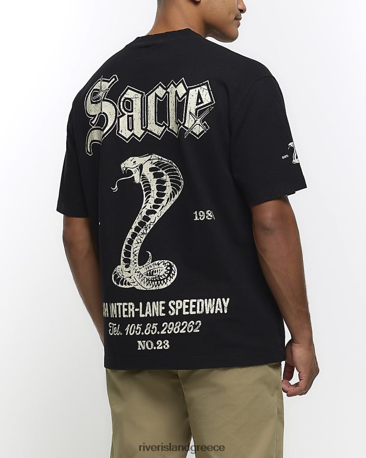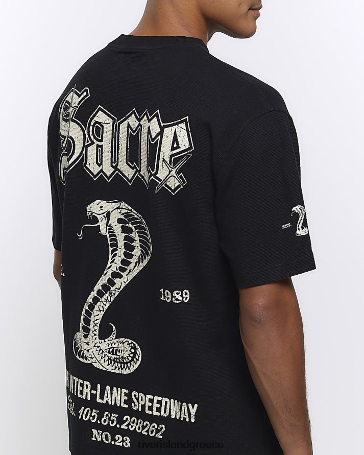 River Island ενδύματα μαύρος άνδρες μπλουζάκι με γραφικά βάφλα σε μεγάλη εφαρμογή B6N8X5572