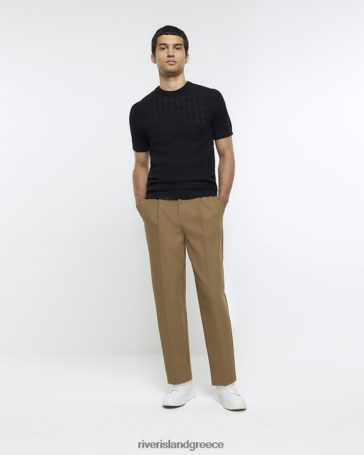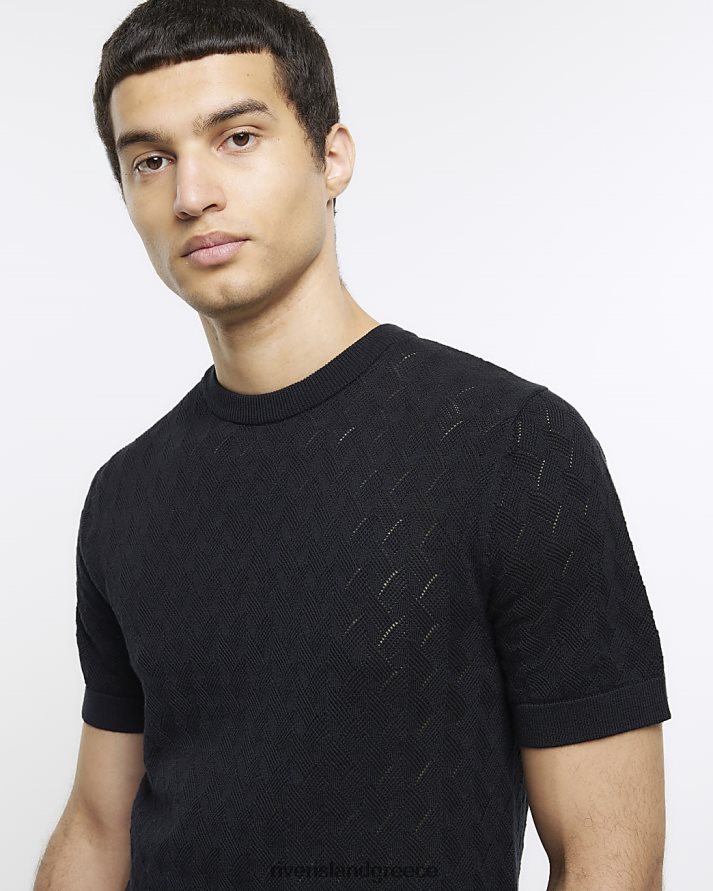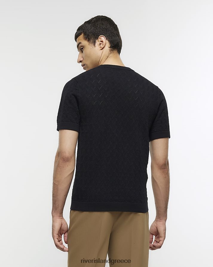 River Island ενδύματα μαύρος άνδρες μπλουζάκι με πλεκτή βελονιά σε λεπτή εφαρμογή B6N8X2784