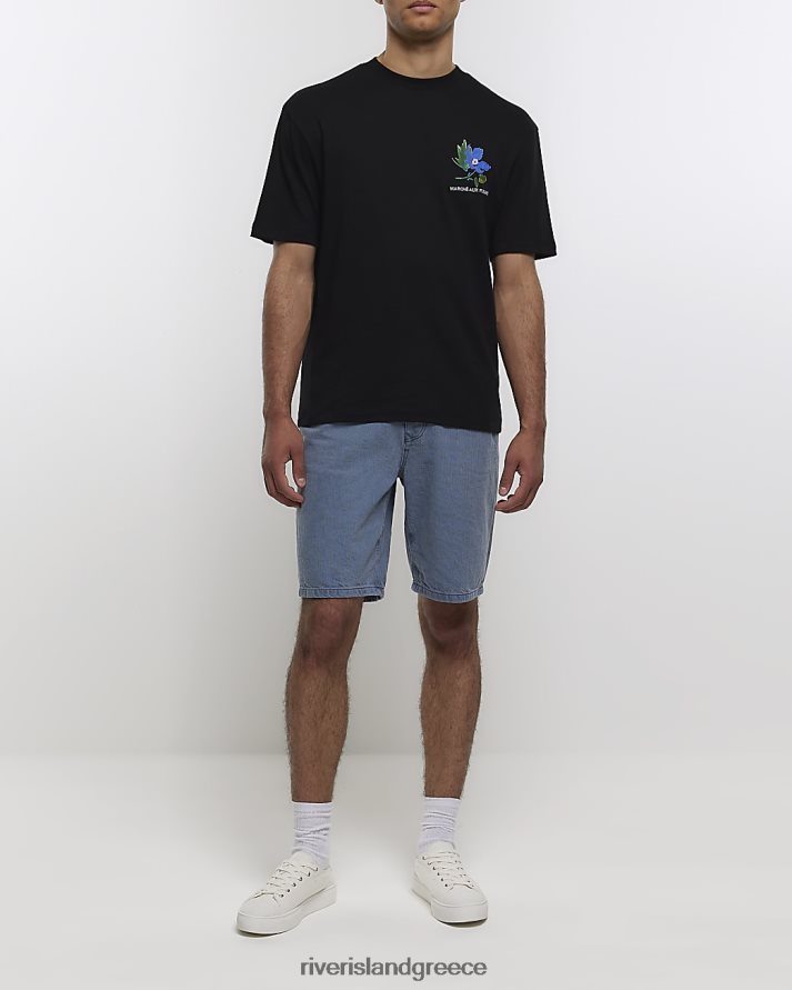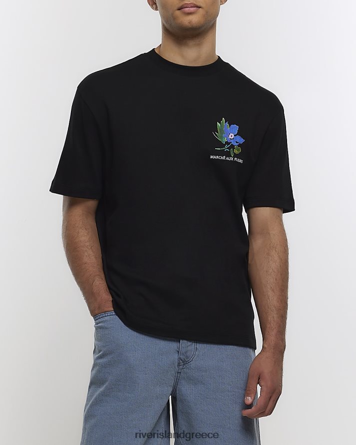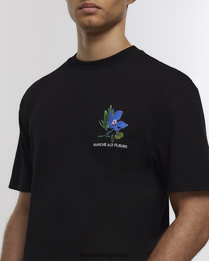 River Island ενδύματα μαύρος άνδρες floral γραφικό μπλουζάκι με κανονική εφαρμογή B6N8X5436