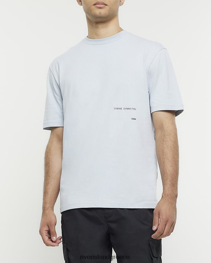 River Island ενδύματα μπλε άνδρες γραφικό μπλουζάκι με κανονική εφαρμογή B6N8X5528
