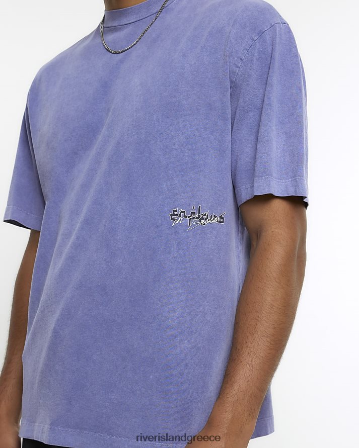 River Island ενδύματα μωβ άνδρες γραφικό φλοράλ μπλουζάκι μεγάλου μεγέθους B6N8X5460