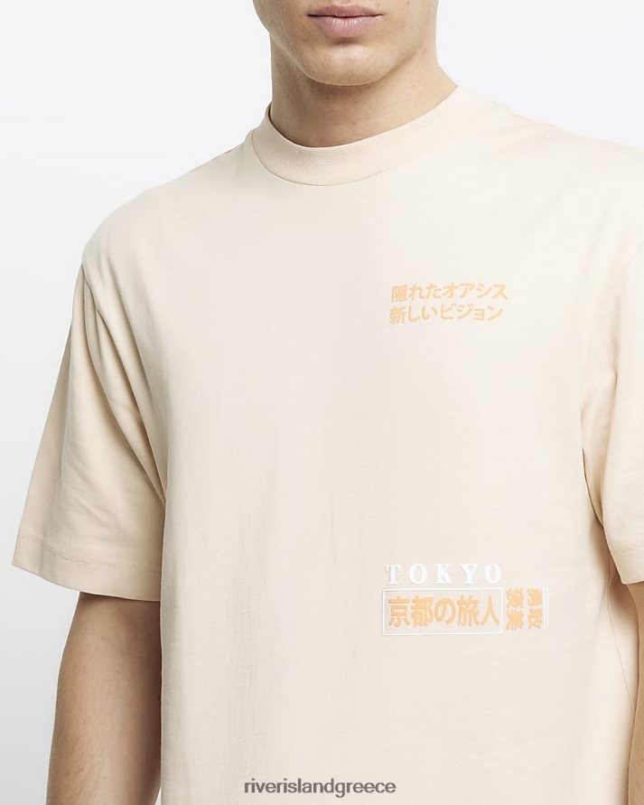 River Island ενδύματα πέτρα άνδρες κανονική εφαρμογή γιαπωνέζικα γραφικά μπλουζάκι B6N8X2863