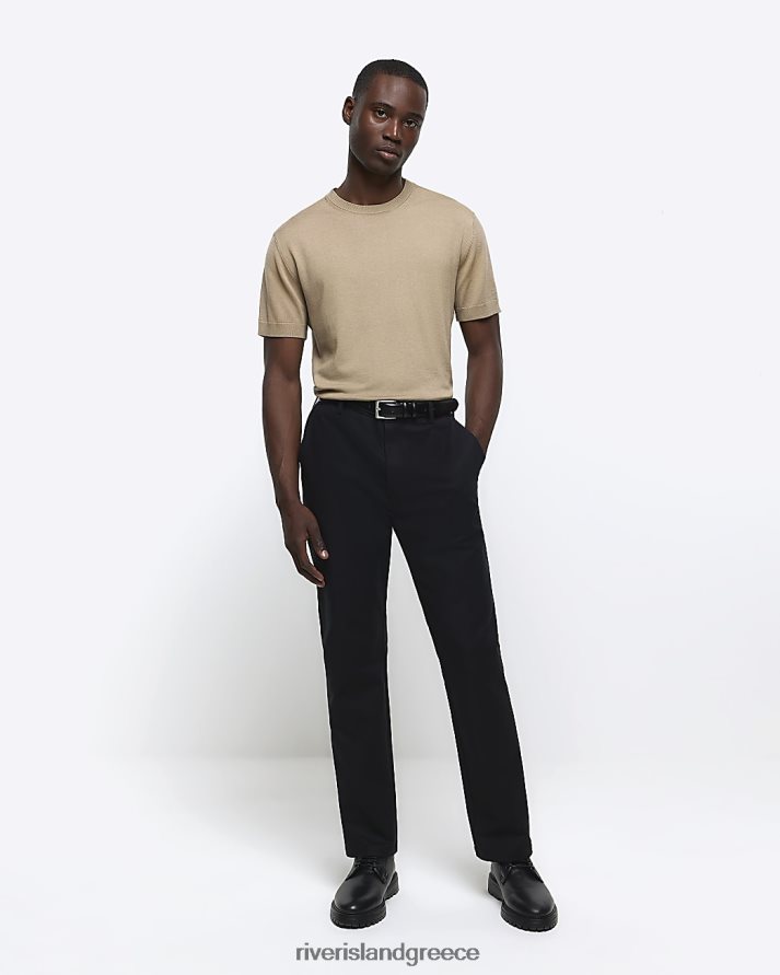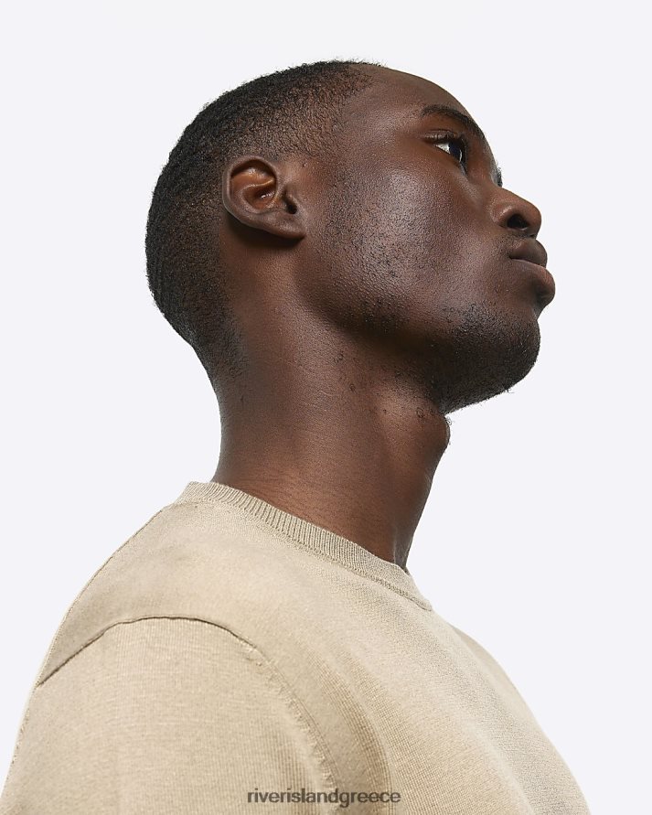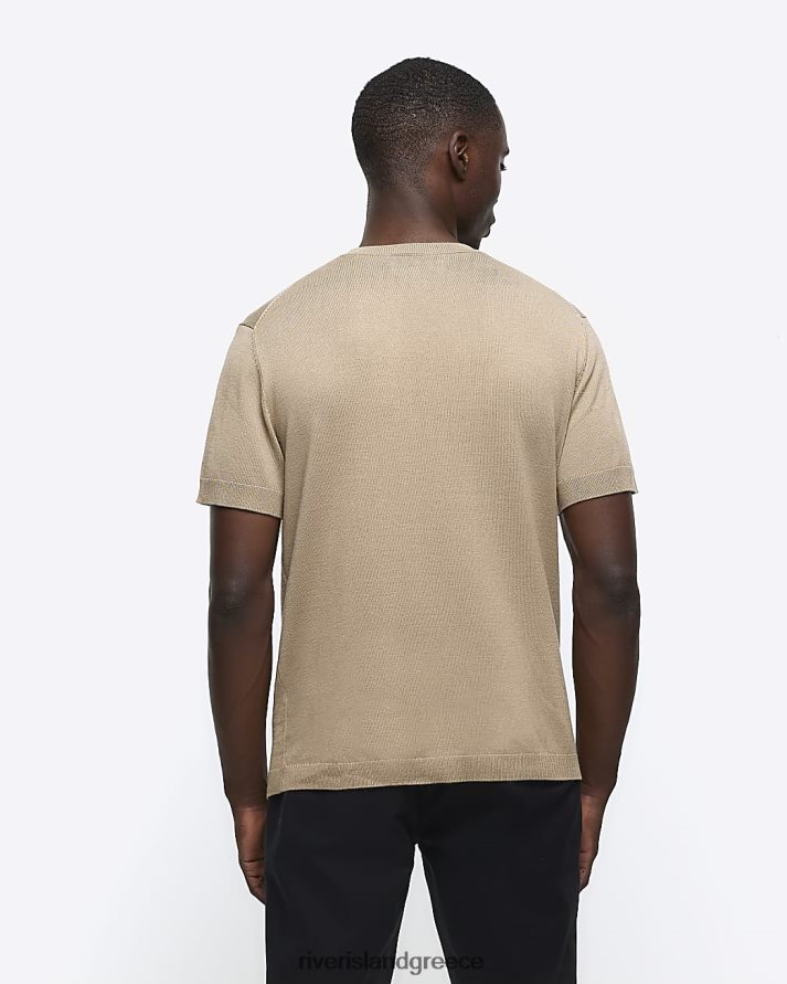 River Island ενδύματα πέτρα άνδρες slim fit πλεκτό t-shirt B6N8X2486