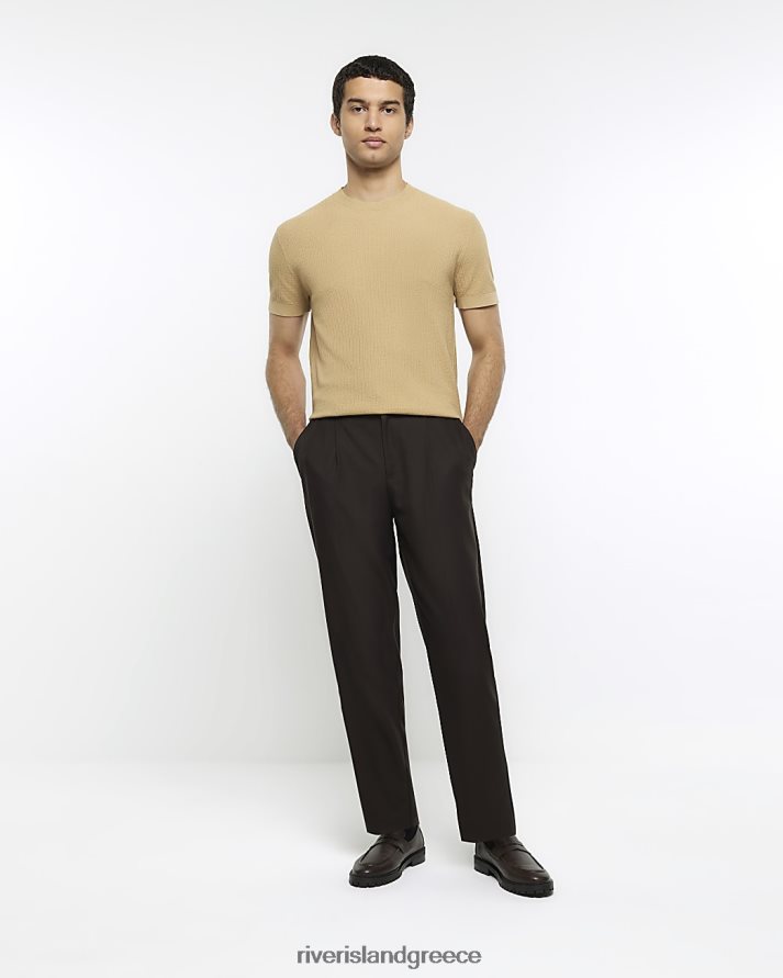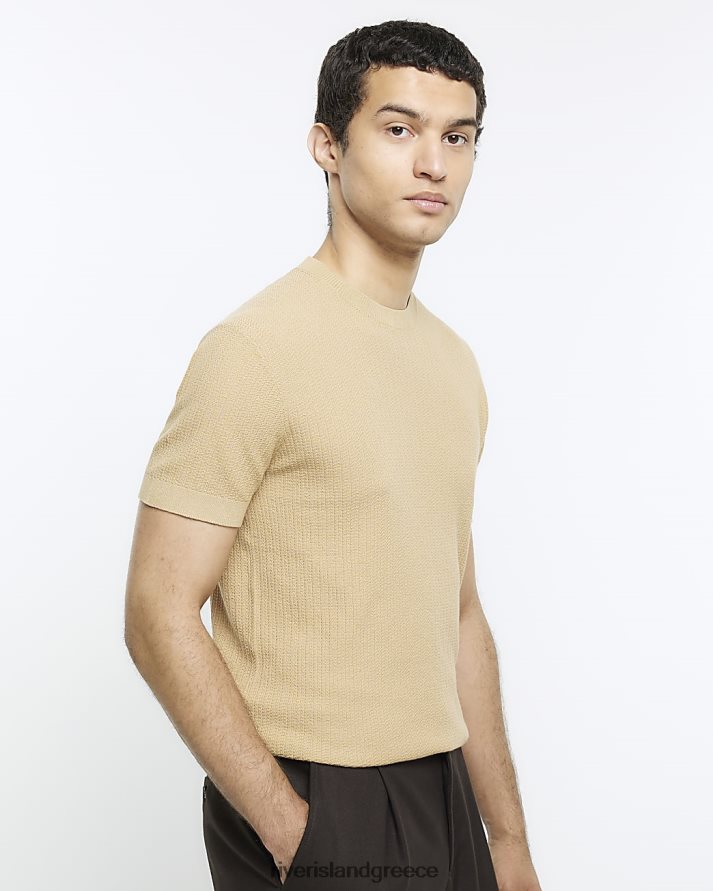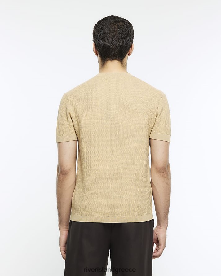 River Island ενδύματα πέτρα άνδρες slim fit πλεκτό t-shirt B6N8X2783
