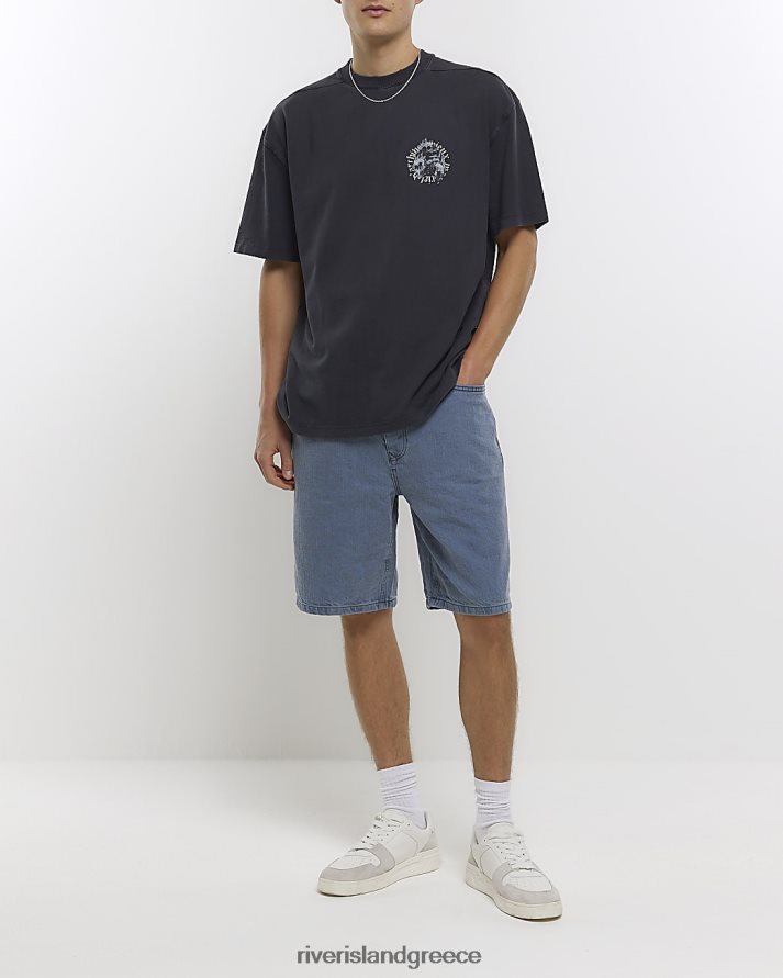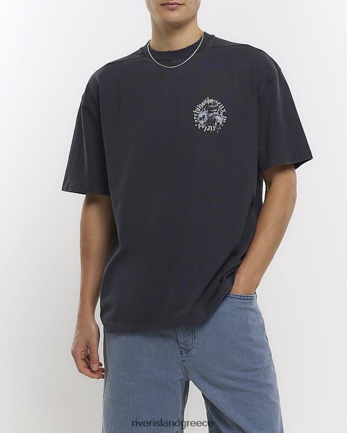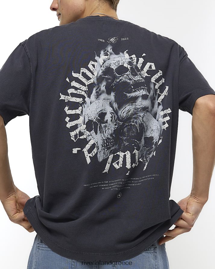 River Island ενδύματα πλυμένο μαύρο άνδρες υπερμεγέθη γραφικό μπλουζάκι κρανίου B6N8X2893