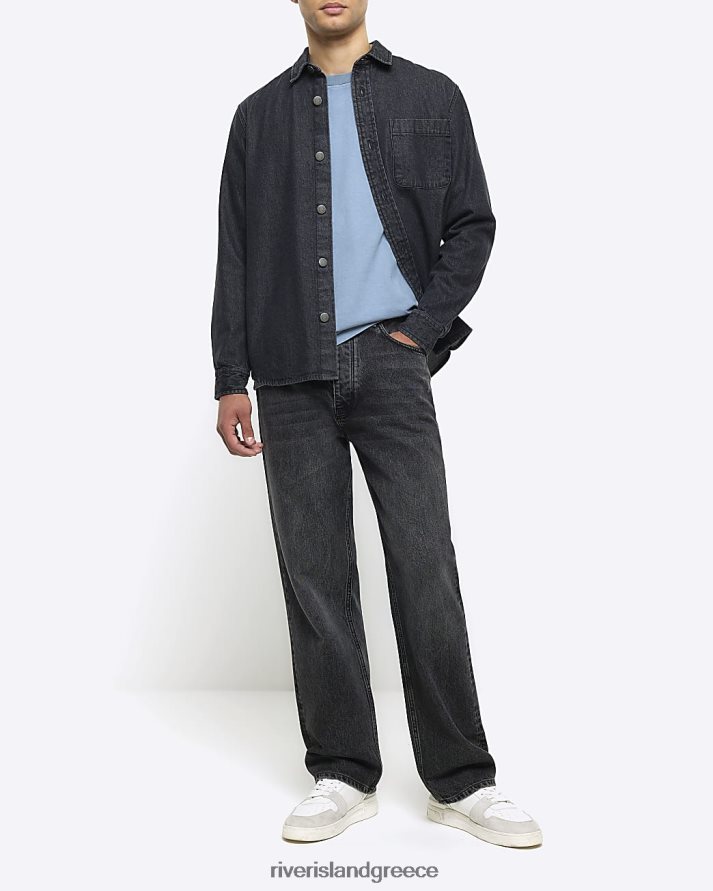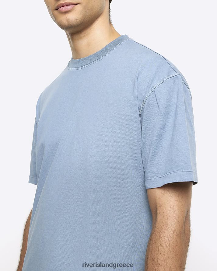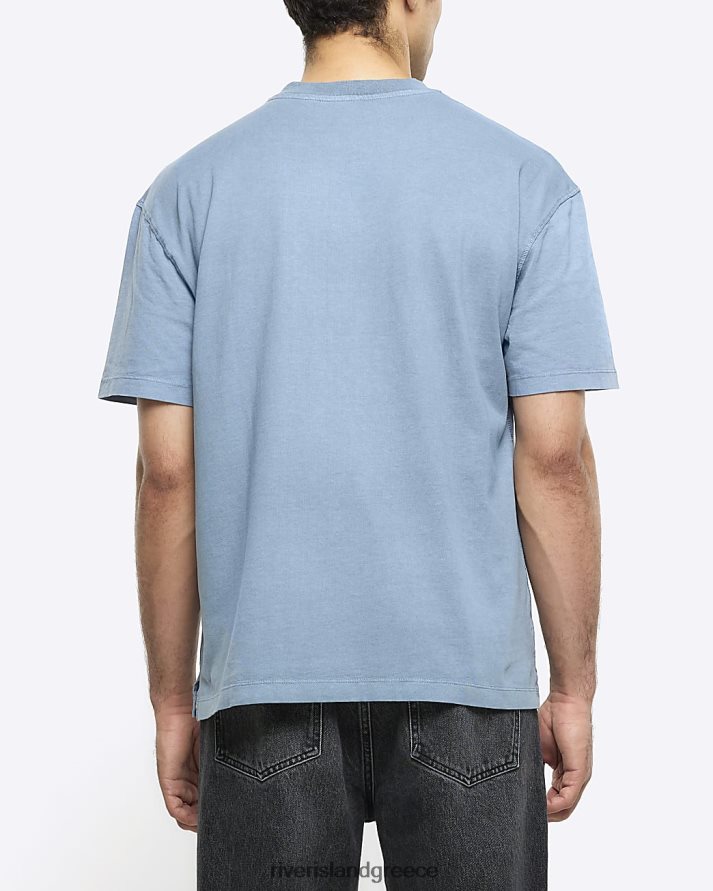 River Island ενδύματα πλυμένο μπλε άνδρες υπερμεγέθη εφαρμοστό μπλουζάκι B6N8X2772