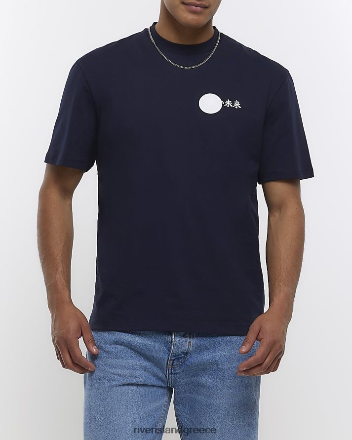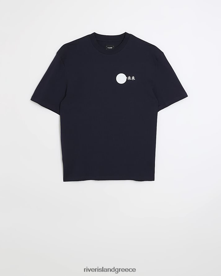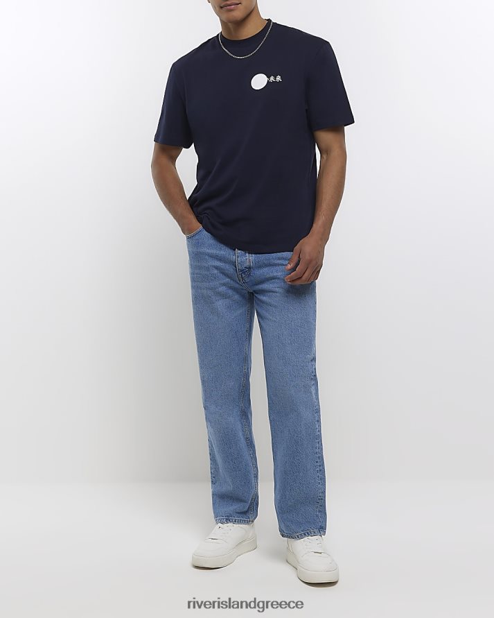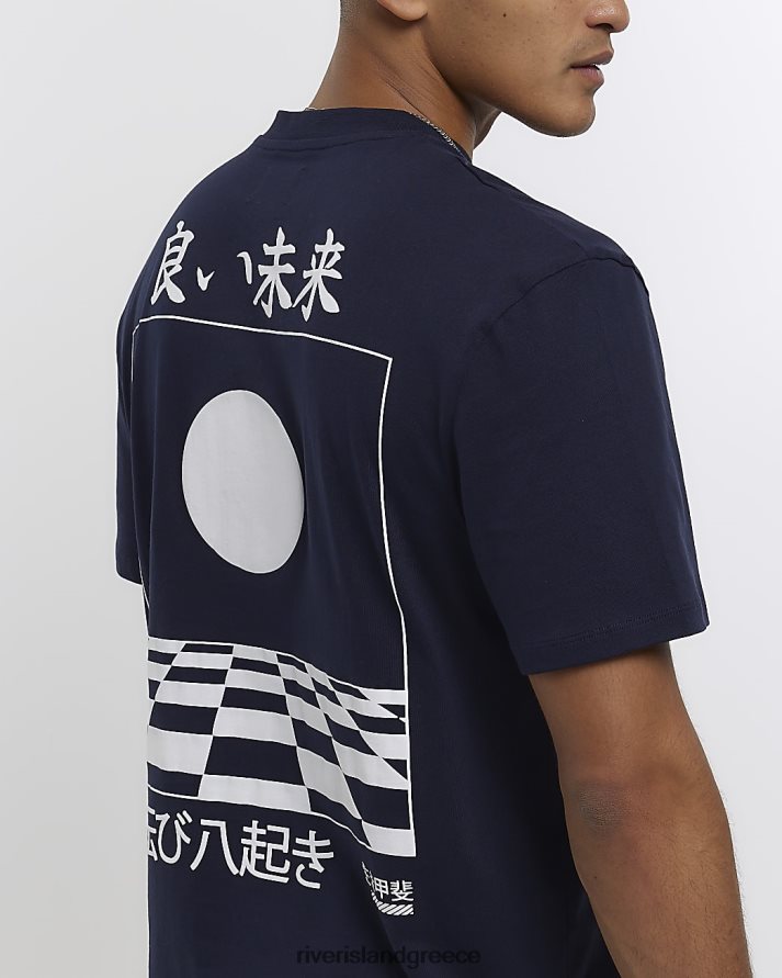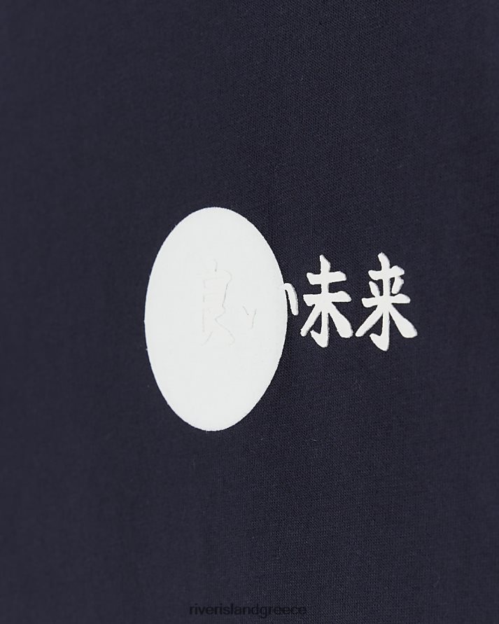 River Island ενδύματα ΠΟΛΕΜΙΚΟ ΝΑΥΤΙΚΟ άνδρες κανονική εφαρμογή γιαπωνέζικα γραφικά μπλουζάκι B6N8X5712