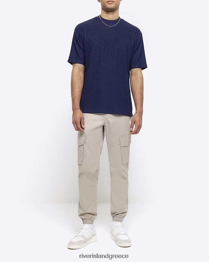 River Island ενδύματα ΠΟΛΕΜΙΚΟ ΝΑΥΤΙΚΟ άνδρες κανονική εφαρμογή plisse t-shirt B6N8X2799