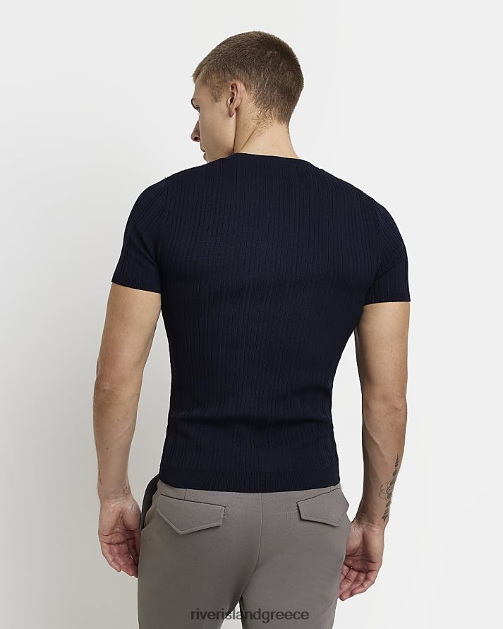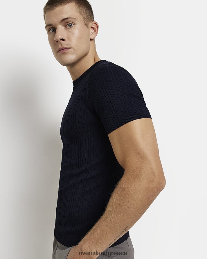 River Island ενδύματα ΠΟΛΕΜΙΚΟ ΝΑΥΤΙΚΟ άνδρες μυϊκή εφαρμογή πλεκτό μπλουζάκι με ραβδώσεις B6N8X3131