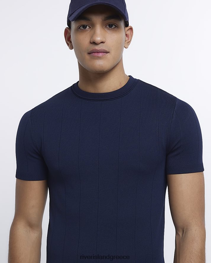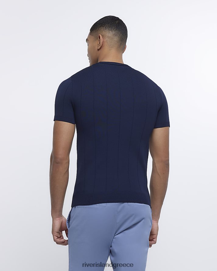 River Island ενδύματα ΠΟΛΕΜΙΚΟ ΝΑΥΤΙΚΟ άνδρες μυϊκή πλεκτή μπλούζα B6N8X2840
