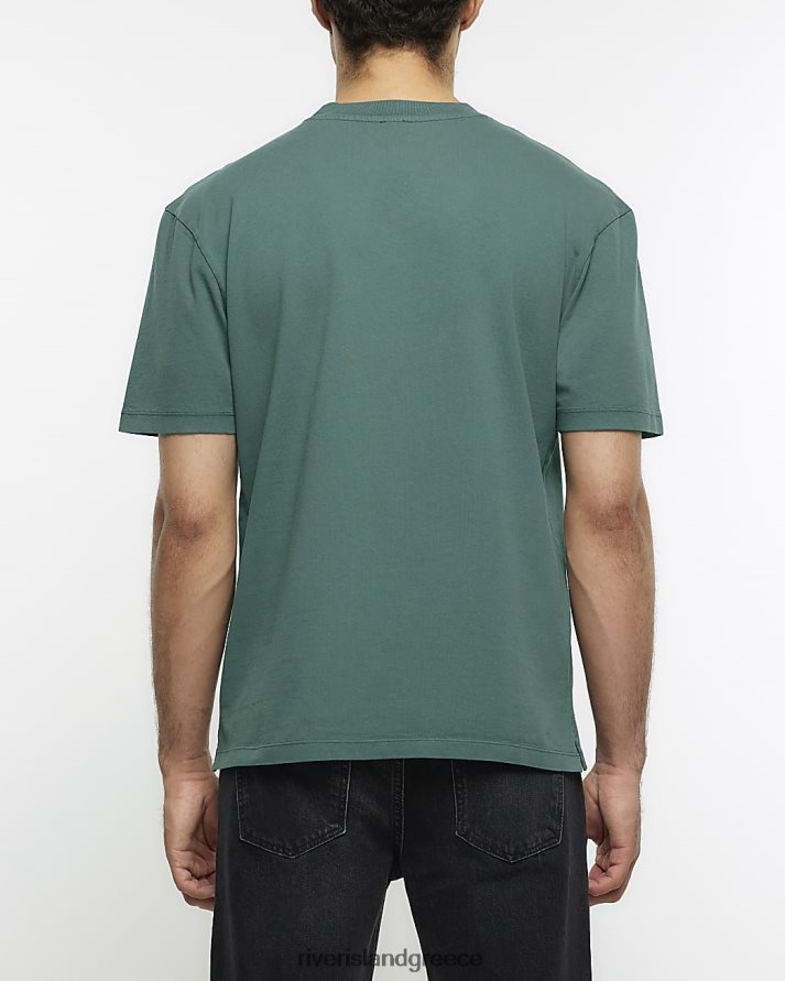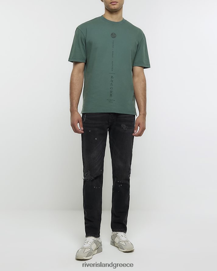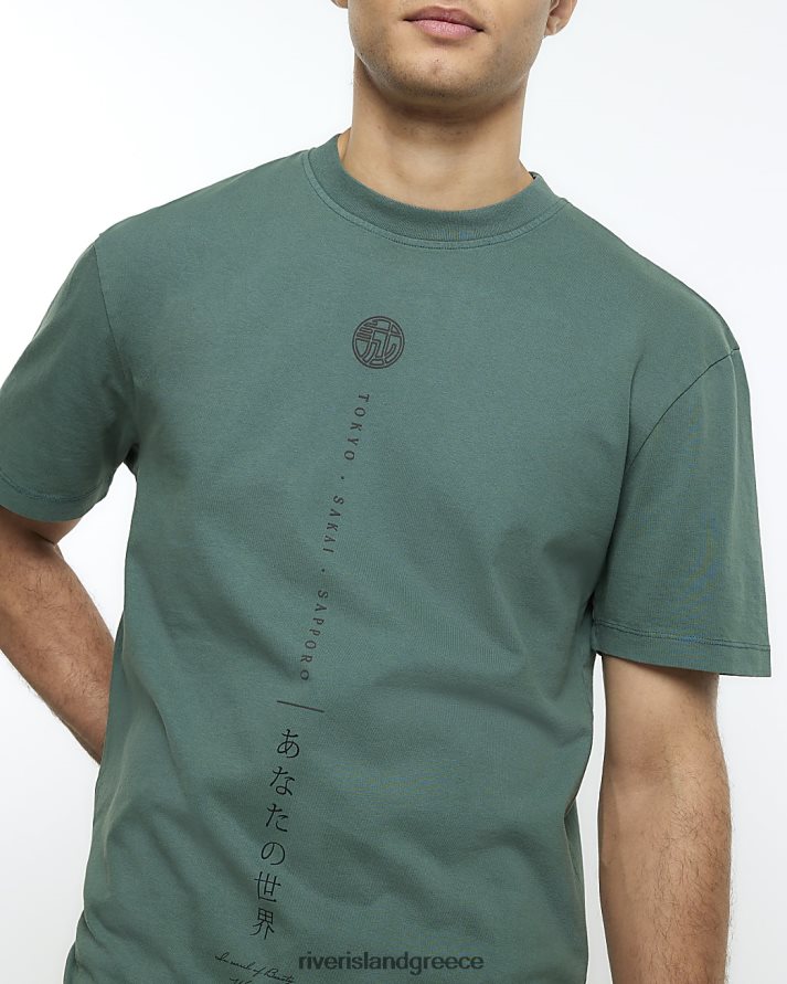 River Island ενδύματα πράσινος άνδρες κανονική εφαρμογή γιαπωνέζικα γραφικά μπλουζάκι B6N8X5430