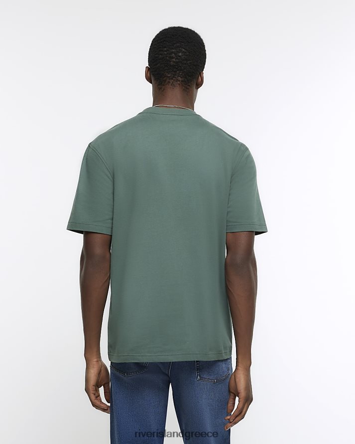 River Island ενδύματα πράσινος άνδρες μπλουζάκι με κανονική εφαρμογή B6N8X2511
