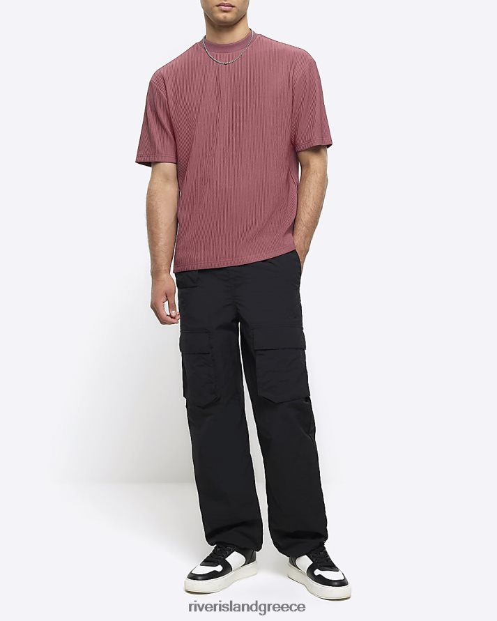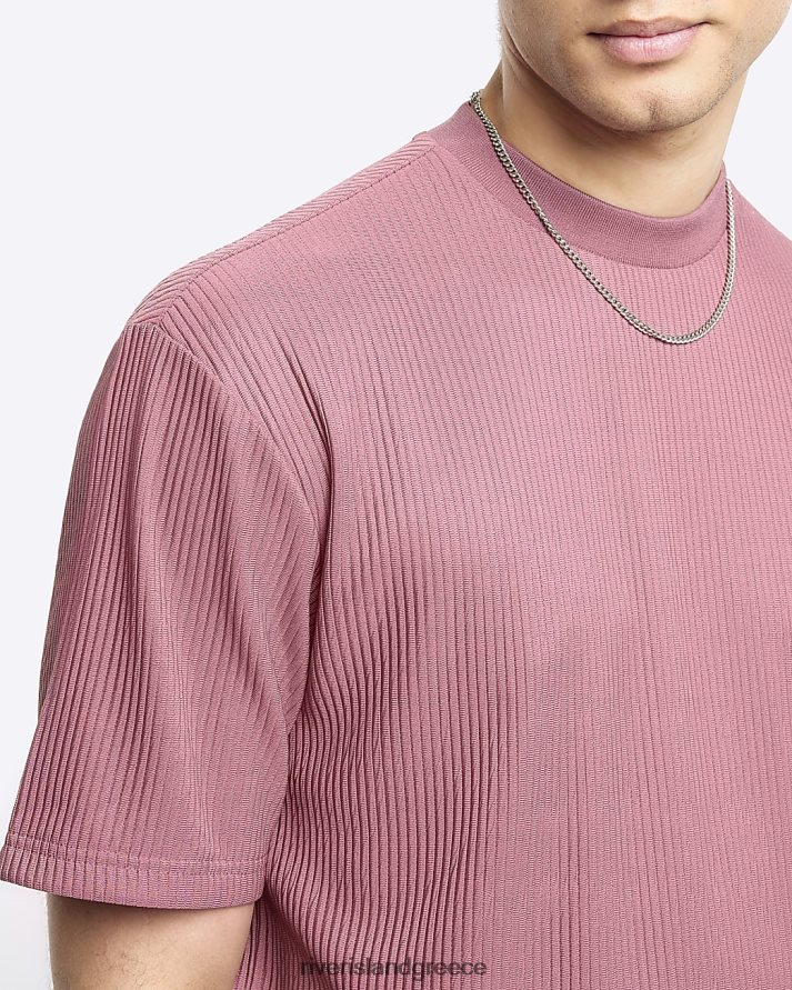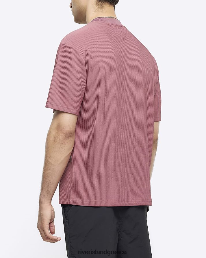 River Island ενδύματα ροζ άνδρες κανονική εφαρμογή plisse t-shirt B6N8X2797