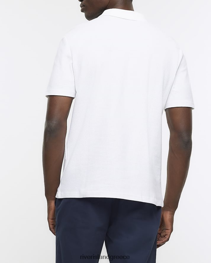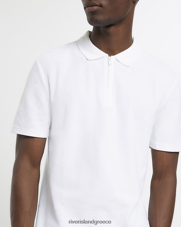 River Island ενδύματα άσπρο άνδρες κυψελωτή μπλούζα πόλο σε λεπτή εφαρμογή B6N8X2618