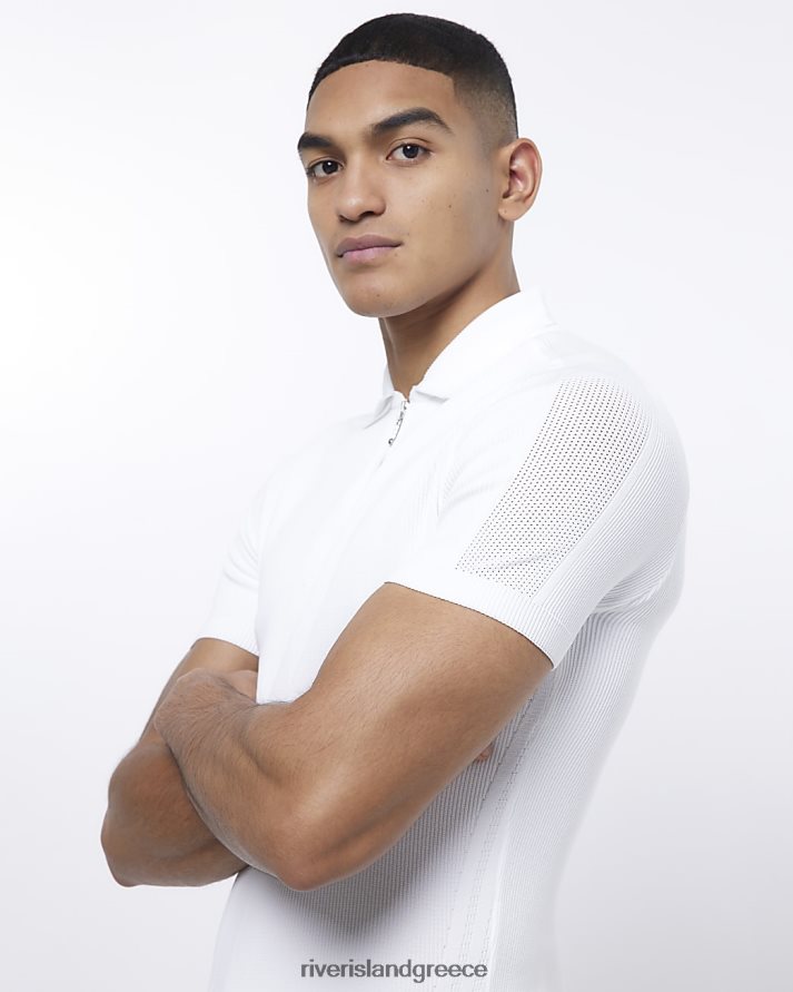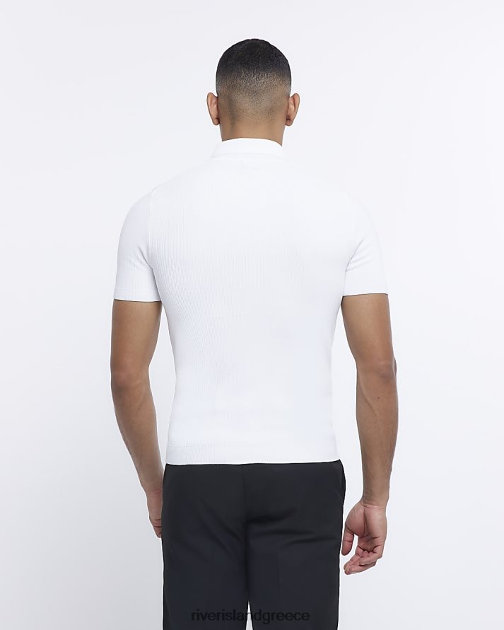 River Island ενδύματα άσπρο άνδρες μυϊκή εφαρμογή κοντομάνικο πόλο B6N8X2996