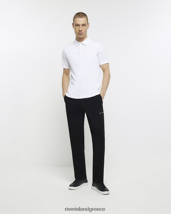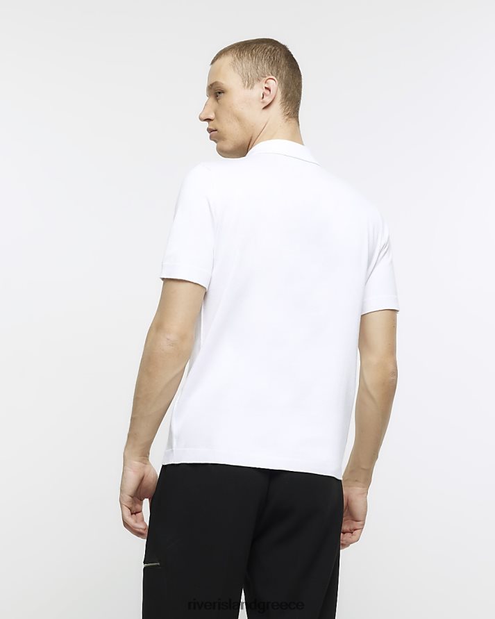 River Island ενδύματα άσπρο άνδρες slim fit πλεκτό κοντομάνικο πόλο B6N8X5482