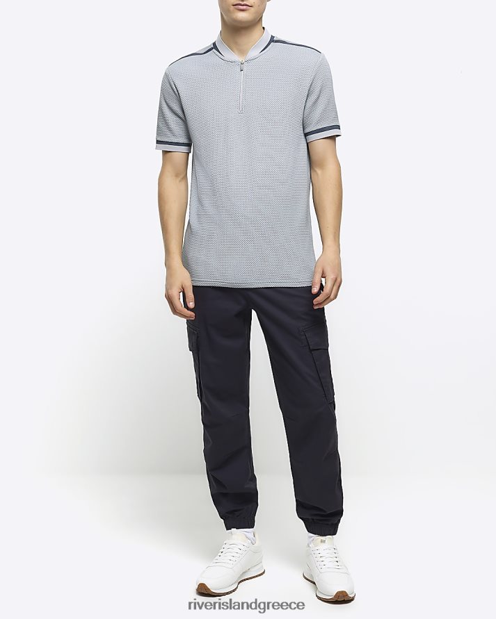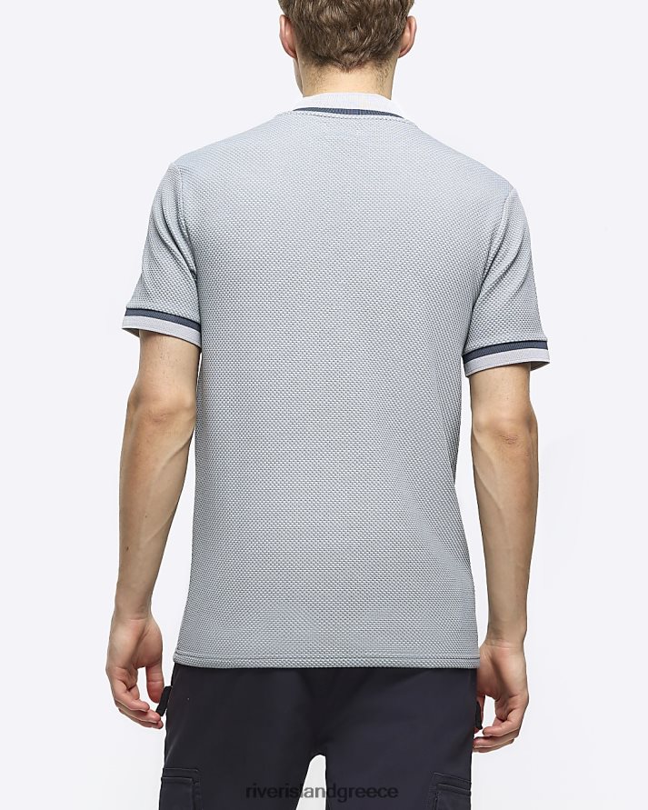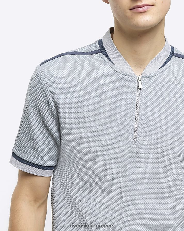 River Island ενδύματα γκρί άνδρες γιακά μπέιζμπολ με λεπτή εφαρμογή με ταινία πόλο B6N8X2606