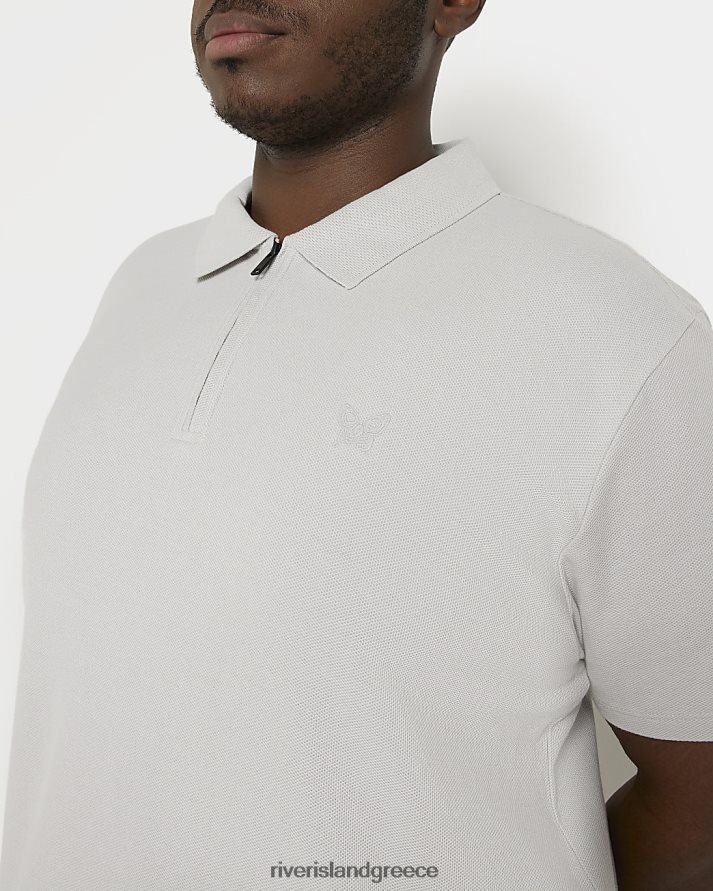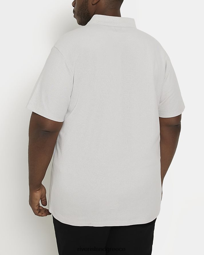 River Island ενδύματα γκρί άνδρες μεγάλο & ψηλό κοντομάνικο πόλο κηρήθρας B6N8X3139