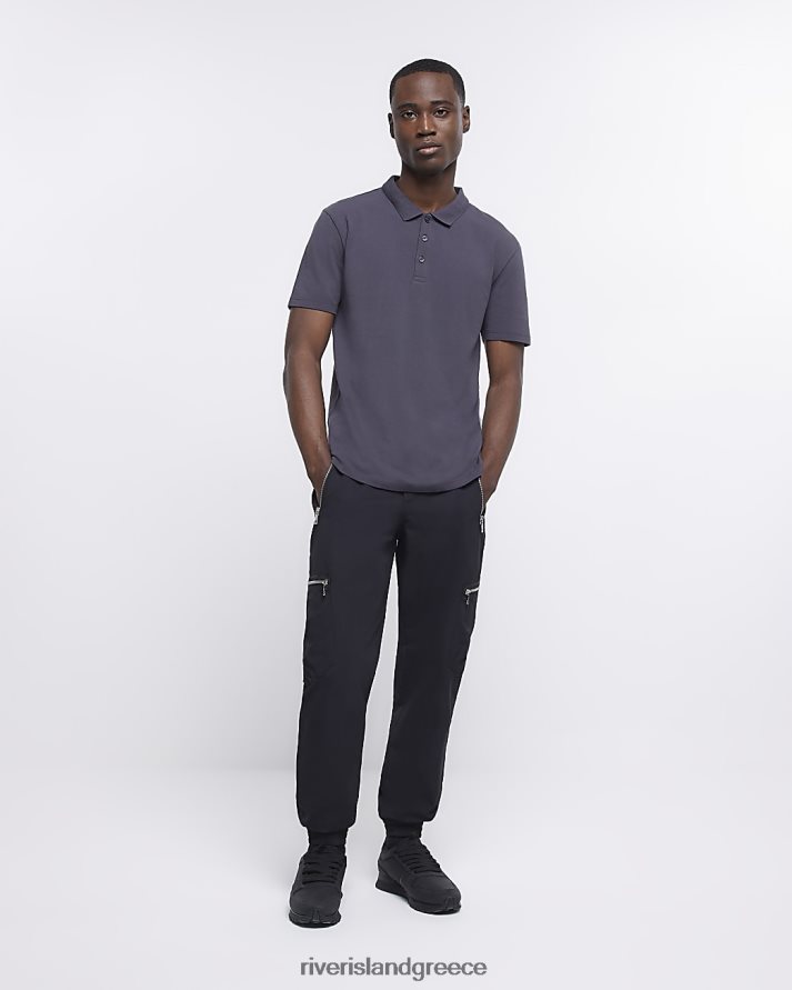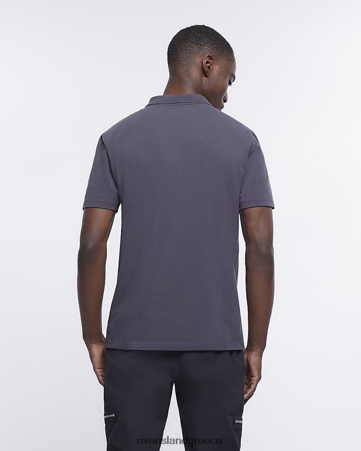 River Island ενδύματα γκρί άνδρες Πόλο μπλουζάκι με κουμπιά σε λεπτή εφαρμογή B6N8X3101