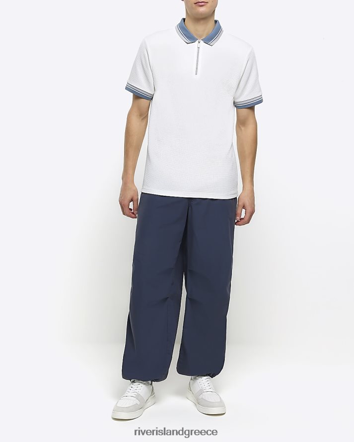 River Island ενδύματα εκρού άνδρες slim fit κολλημένο μισό πόλο με φερμουάρ B6N8X5519