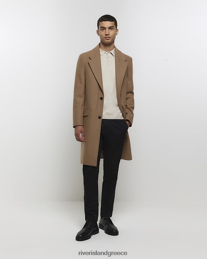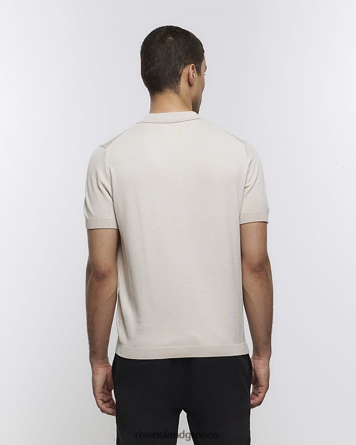 River Island ενδύματα εκρού άνδρες slim fit πλεκτό μπλουζάκι πόλο B6N8X2800