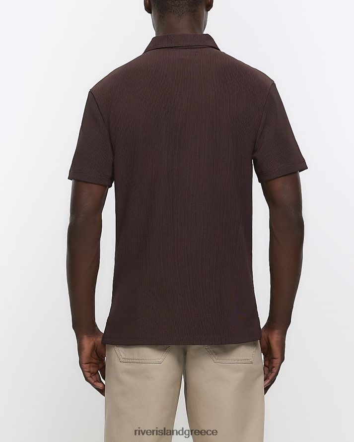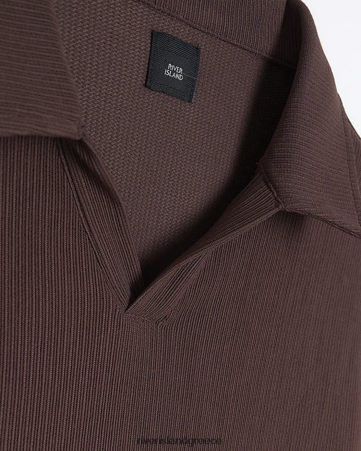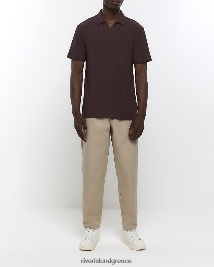 River Island ενδύματα καφέ άνδρες slim fit οθωμανικό κοντομάνικο πόλο B6N8X5727
